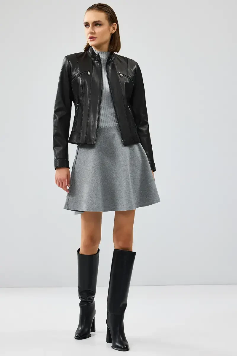 Кожаная куртка Linda для женщин, черная, короткая, 24WGD5200U4