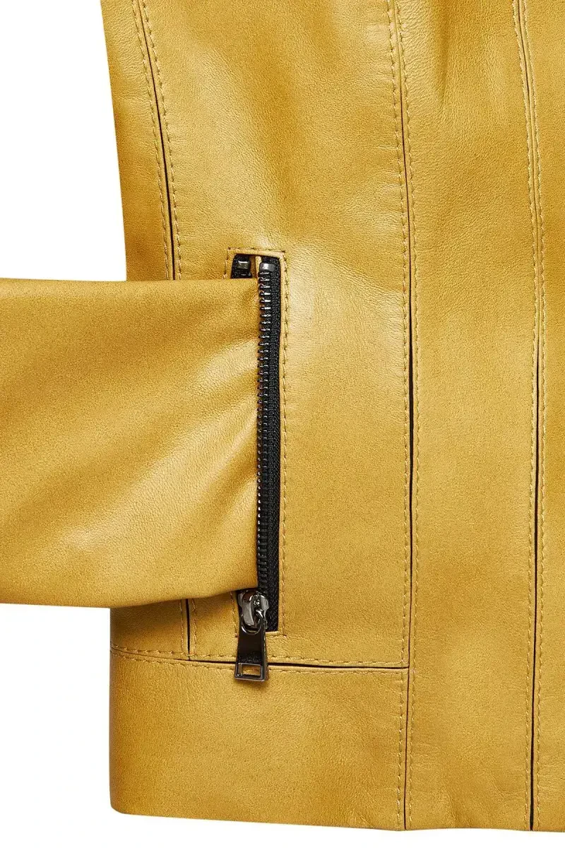 Energize your style with the Linda Women's Yellow Short Leather Jacket! This stylish and modern leather jacket attracts attention with its vibrant yellow color, while its short cut creates a feminine silhouette. Produced with Derimod quality, this jacket is a perfect choice for both daily use and your special occasions. Whether you combine it with jeans for a casual look, or create a sophisticated style by combining it with an elegant dress, the Linda leather jacket will add a different touch to any combination. Moreover, it offers an unmissable opportunity with its discounted price. Add this leather jacket, which will be an indispensable part of your wardrobe, to your cart immediately and let your style speak. The texture of the leather jacket is soft and high quality, which ensures long-term use and comfort. The energy of the yellow color helps you create a positive impact in any environment, while its short cut offers a modern and trendy look. The Linda leather jacket is a candidate to be the choice of stylish women.