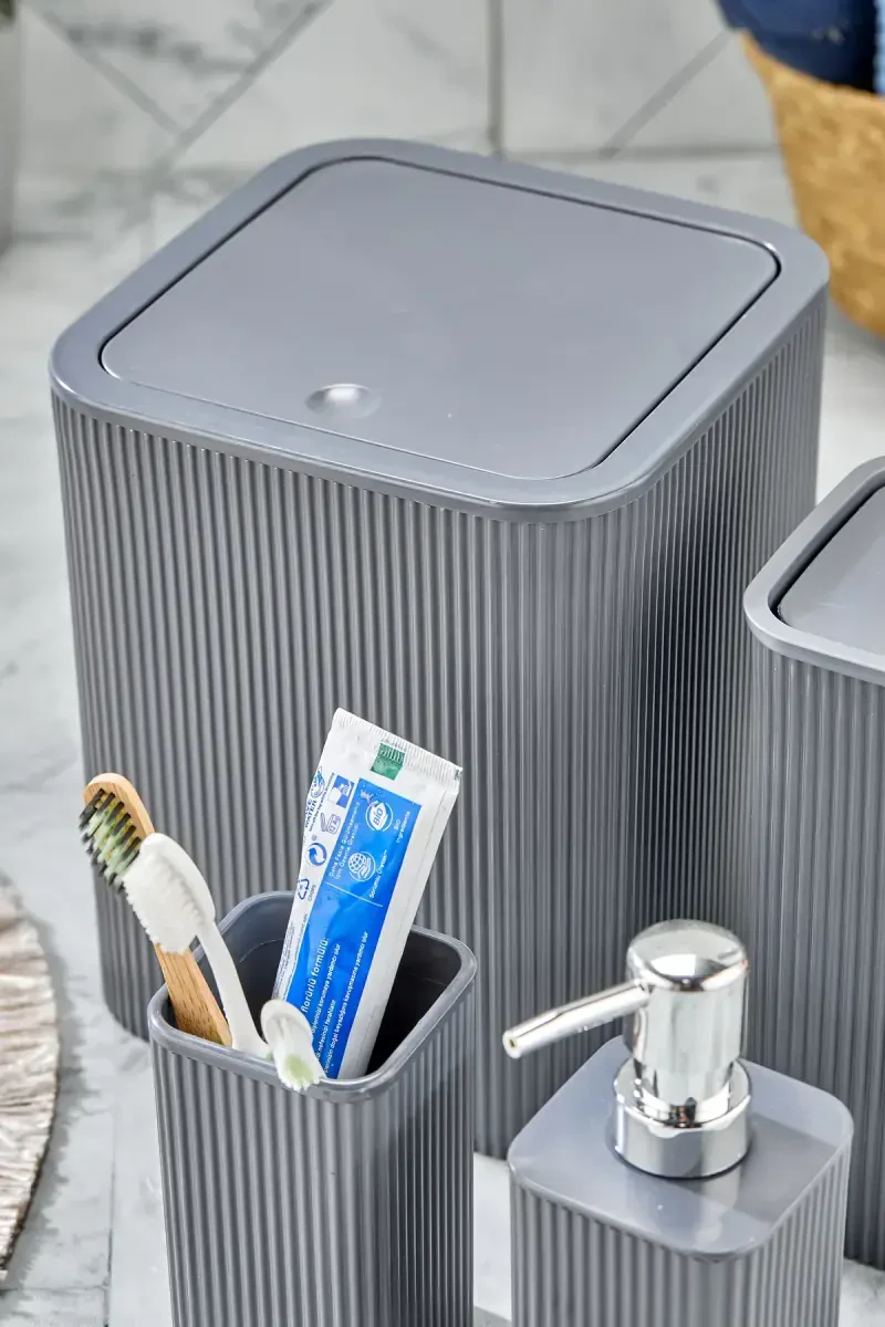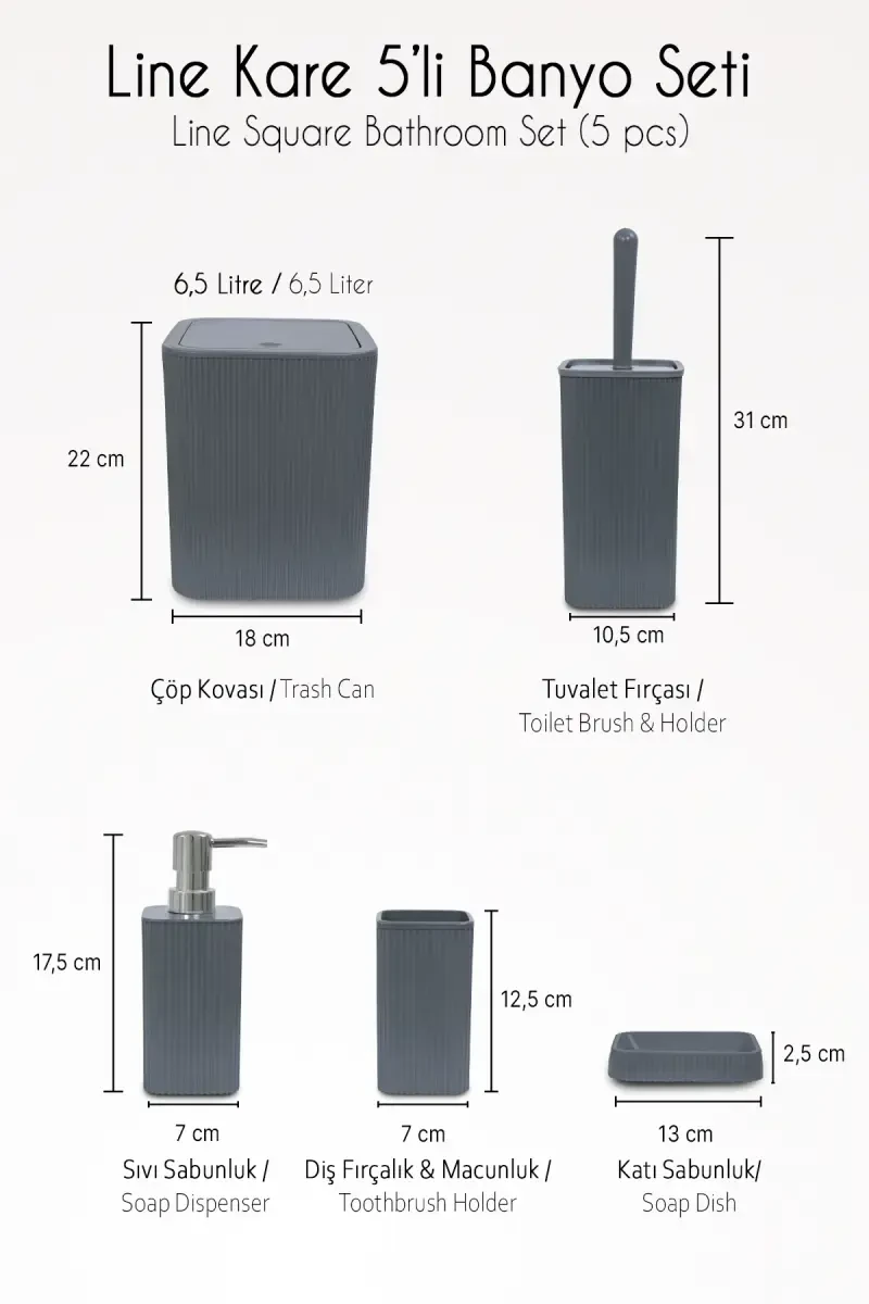 Banyo to'plami, antrasit, kvadrat, zamonaviy, 5 qism, axlat qutisi, sovun idishi, hojatxona cho'tkasi, tish cho'tkasi qutisi, hammom aksessuari
