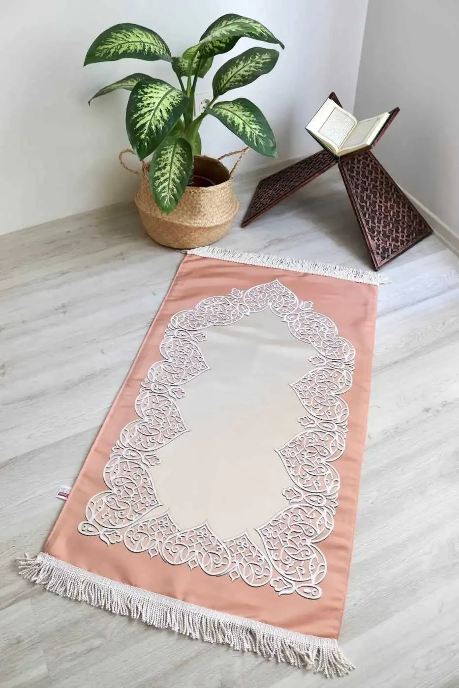 Bridal Prayer Rug Salmon | Lined Luxury Prayer Rug S1022 | Special Design Prayer Rug