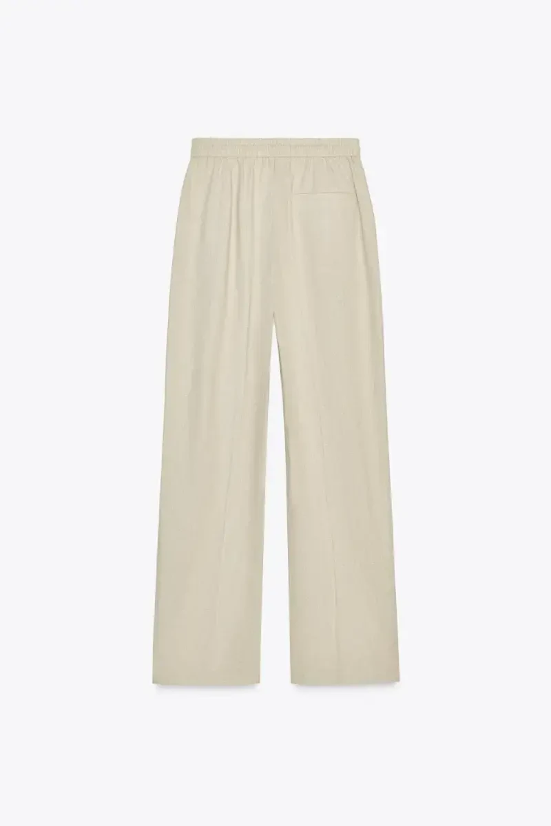 Meet the Linen Blend Straight Leg Pants, a combination of elegance and comfort that will become a staple in your wardrobe! These pants, which easily match any outfit with their light beige color, offer a cool and comfortable wearing experience even in hot weather thanks to their linen blend fabric. The high-waisted design gently emphasizes your body lines, while the drawstring-adjustable elastic waistband guarantees ideal comfort all day long. Whether you prefer it for your daily activities or special occasions, these pants allow you to move comfortably without sacrificing your elegance. The Linen Blend Straight Leg Pants, which have a useful structure thanks to their front pockets, are also a perfect fit for every body type with their straight fit. With a wide range of combination options, you can use these pants with basic t-shirts for a sporty look or with elegant blouses to create a more sophisticated style. The Linen Blend Straight Leg Pants, the choice of women who want to be both stylish and comfortable, are candidates to be the most loved piece of your wardrobe. Carry the energy of summer on you with the natural texture of linen and the freshness of light beige. These pants are not just a garment, but also offer a lifestyle. It is a choice that will accompany you in your daily rush, complete your elegance and make you feel good at all times. Thanks to the breathable structure of the linen blend, it prevents sweating and helps you stay fresh all day long. The high-waisted design allows you to create a stylish silhouette by tucking in your blouses or shirts, while the drawstring detail adds a unique touch to the pants. Linen Blend Straight Leg Pants are a timeless piece and will remain in your wardrobe for many years with their timeless design. It offers long-lasting use thanks to its high-quality material and careful workmanship. Don't miss out on these pants, where comfort and elegance are considered in every detail!