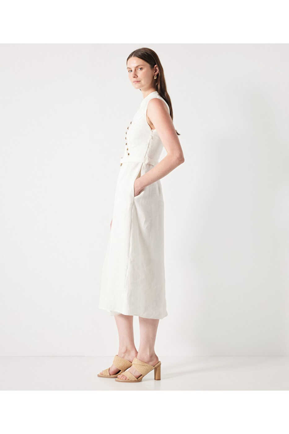 This linen dress, which will be an indispensable part of your summer wardrobe, combines elegance and comfort. Made from lightweight and breathable linen fabric, the dress offers comfortable wear throughout the day. The button accent on the front of the dress adds a stylish touch while also providing ease of use. A perfect choice for a relaxed and stylish look, this dress appeals to women of all ages. This dress, which you can easily wear in everyday life, on the beach or on special occasions, will be a must-have in your wardrobe.