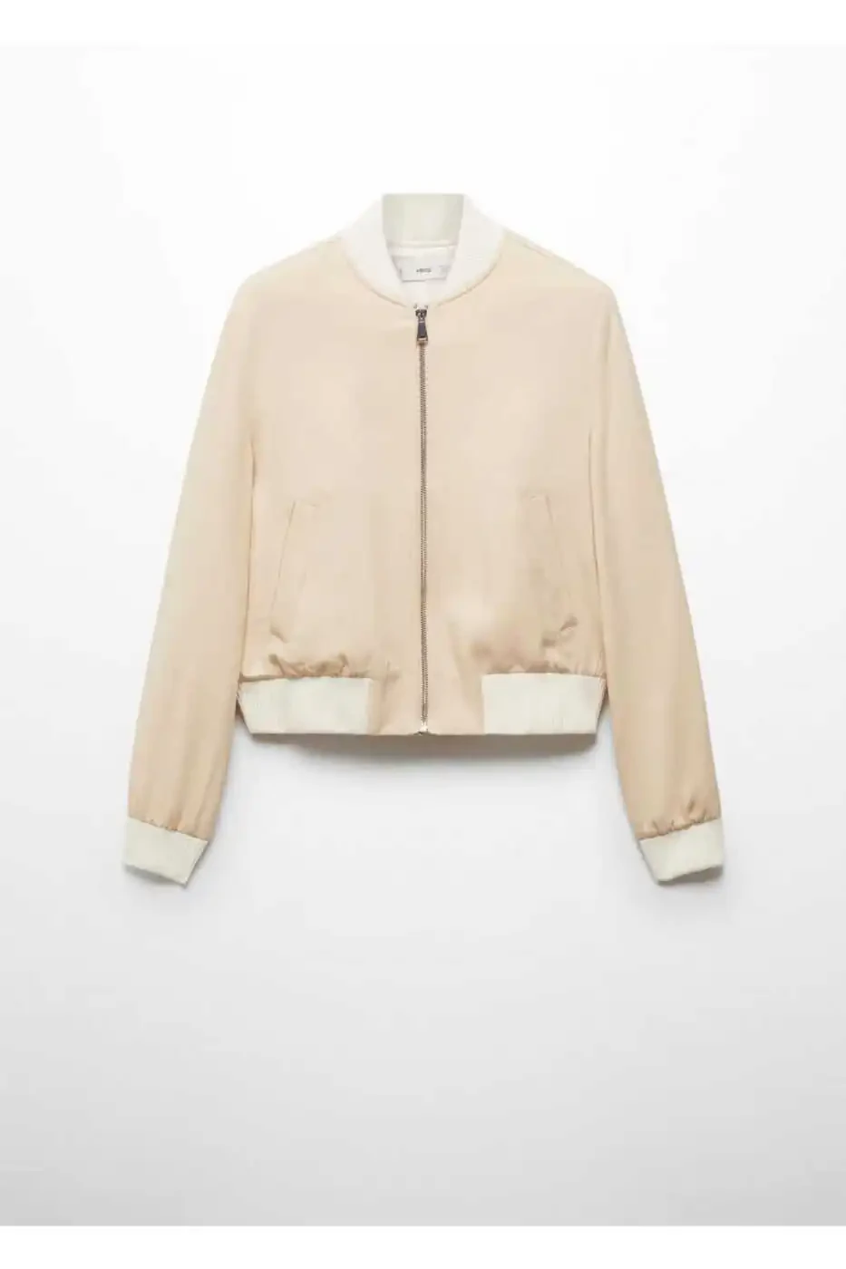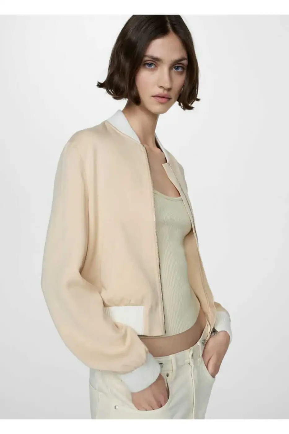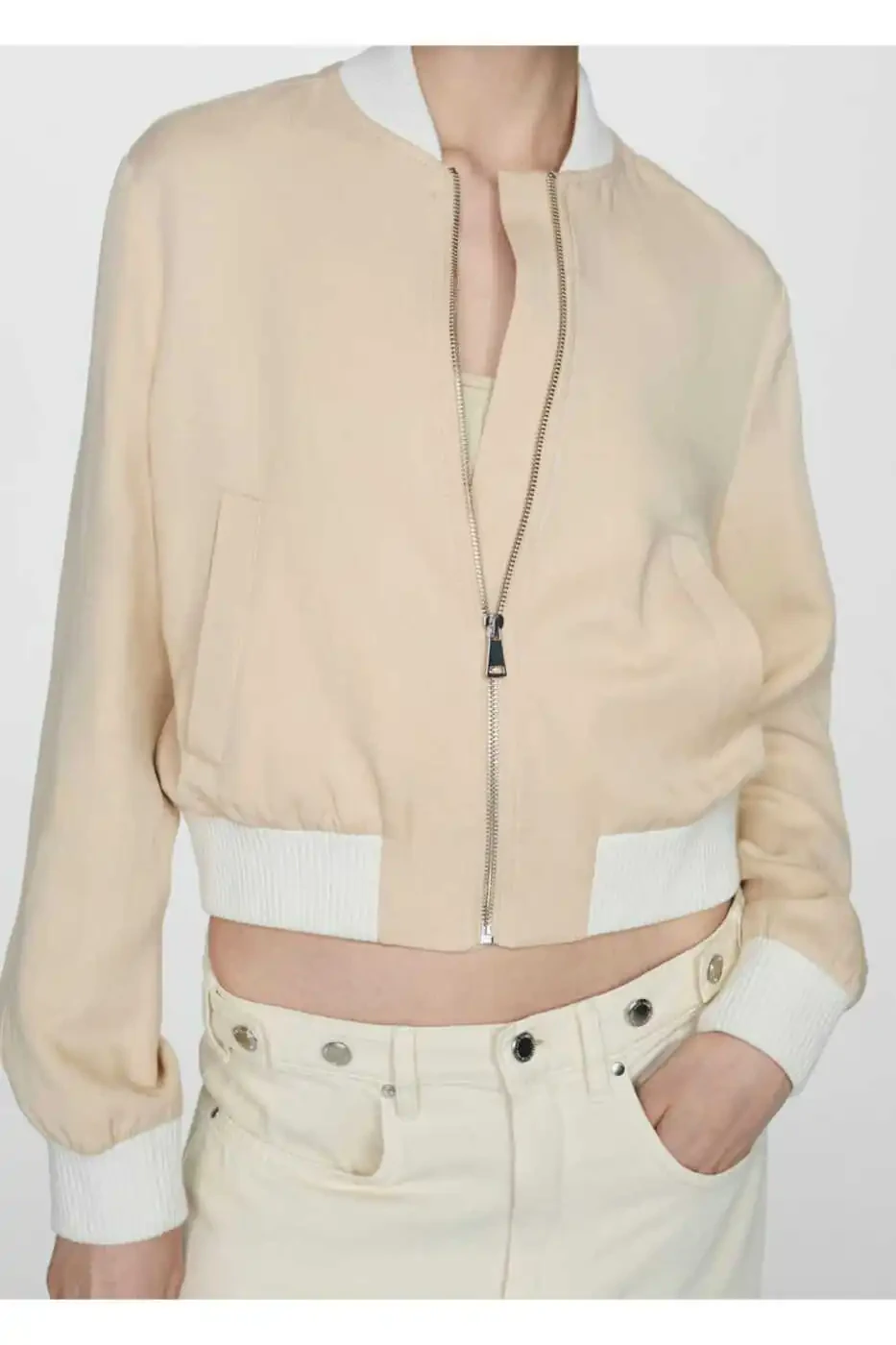 This stylish bomber jacket, designed with the perfect combination of linen and lyocell fabric, brings together comfort and style. Its bomber style cut offers both a sporty and elegant look, while the breathability and softness of the linen and lyocell blend ensures a comfortable wearing experience all day long. A bomber jacket collar, long sleeves, and cuffs reflect the classic bomber jacket look, while a metal zippered front closure provides ease for practical use. With two side slit pockets, you can both carry small items safely and keep your hands warm in cold weather. Elastic embellishments add a modern and stylish touch to the jacket.