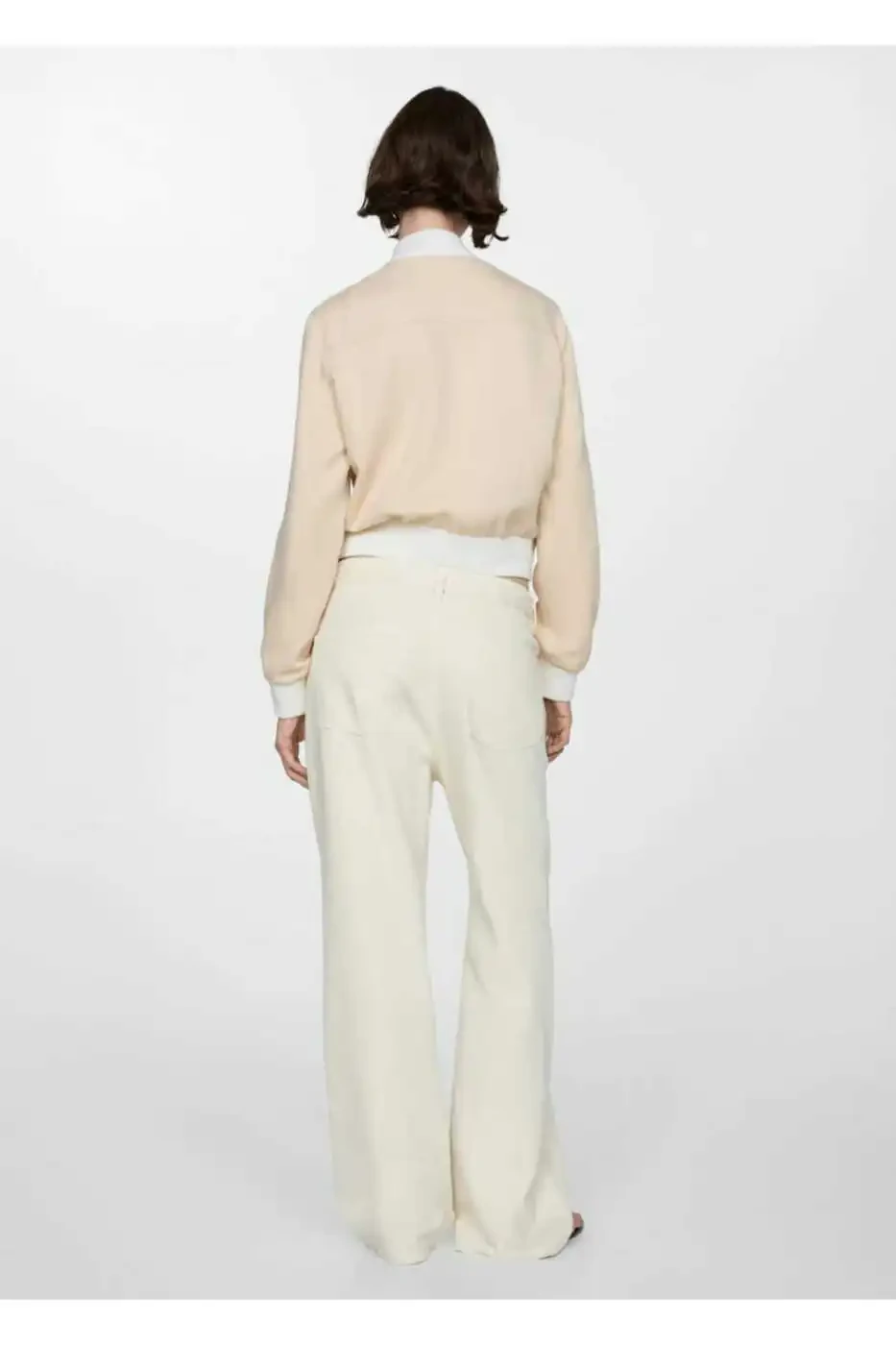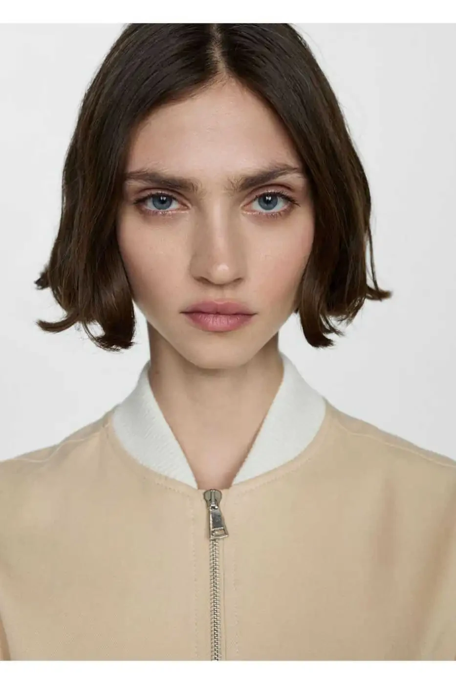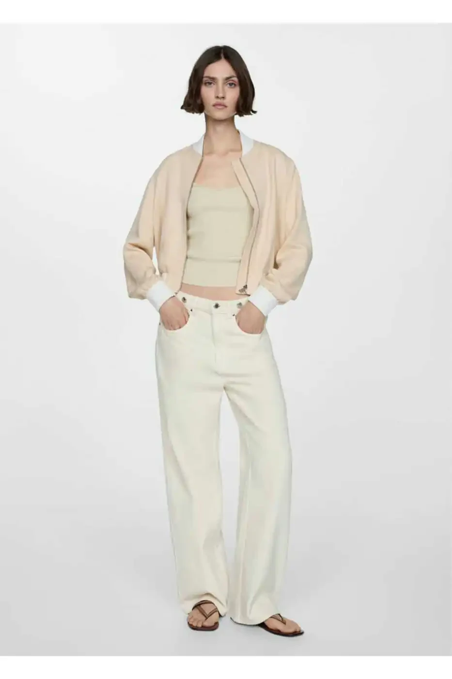 This stylish bomber jacket, designed with the perfect combination of linen and lyocell fabric, brings together comfort and style. Its bomber style cut offers both a sporty and elegant look, while the breathability and softness of the linen and lyocell blend ensures a comfortable wearing experience all day long. A bomber jacket collar, long sleeves, and cuffs reflect the classic bomber jacket look, while a metal zippered front closure provides ease for practical use. With two side slit pockets, you can both carry small items safely and keep your hands warm in cold weather. Elastic embellishments add a modern and stylish touch to the jacket.