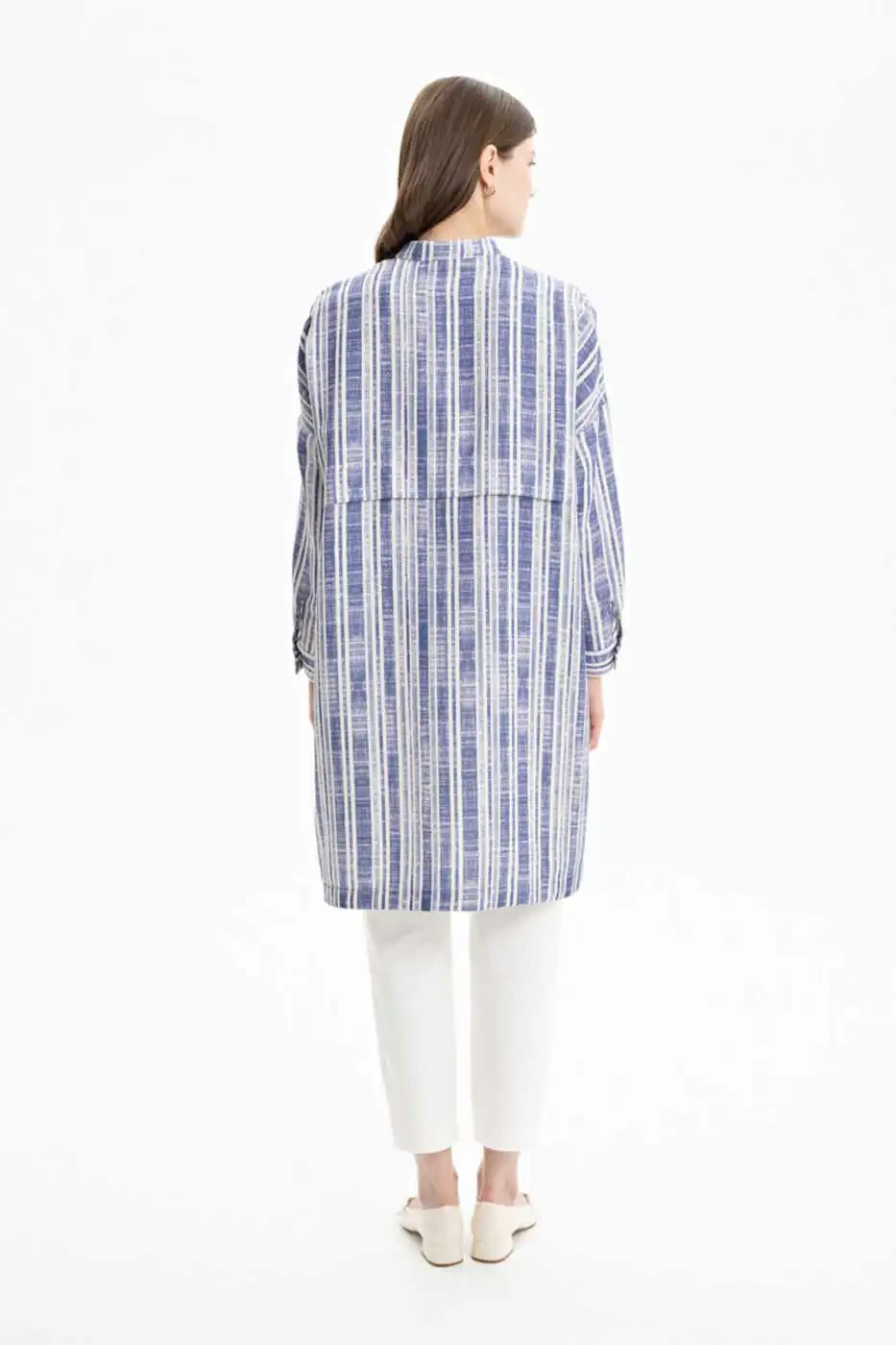 Combine both elegance and comfort in your wardrobe with the Linen Striped Tunic. This special design tunic stands out with the unique texture of natural linen fabric and its timeless striped pattern. Ideal for everyday use, this tunic allows you to move freely all day long thanks to its comfortable cut. You can create different styles by combining it with jeans, leggings, or shorts. The breathable structure of linen offers a cool and refreshing use, especially in hot weather. While the striped pattern provides a classic look that is always in fashion, the modern cut of the tunic adapts to current trends. This tunic is a perfect choice for women who want to be both stylish and comfortable. It helps you reflect your style in any environment, whether you are at the office, shopping, meeting with friends, or on vacation. This tunic, which you can easily combine with your accessories, will be an indispensable part of your wardrobe. Make your style speak with the Linen Striped Tunic and always feel good. It offers long-lasting use thanks to its high-quality linen fabric and careful workmanship. It is also a practical option with its easy-to-iron feature. This tunic, which should definitely be in your closet, is a piece that you can easily use in every season. While the natural texture of linen gently touches your skin, the striped pattern gives an energetic and dynamic look. Enjoy being both stylish and comfortable with the Linen Striped Tunic.