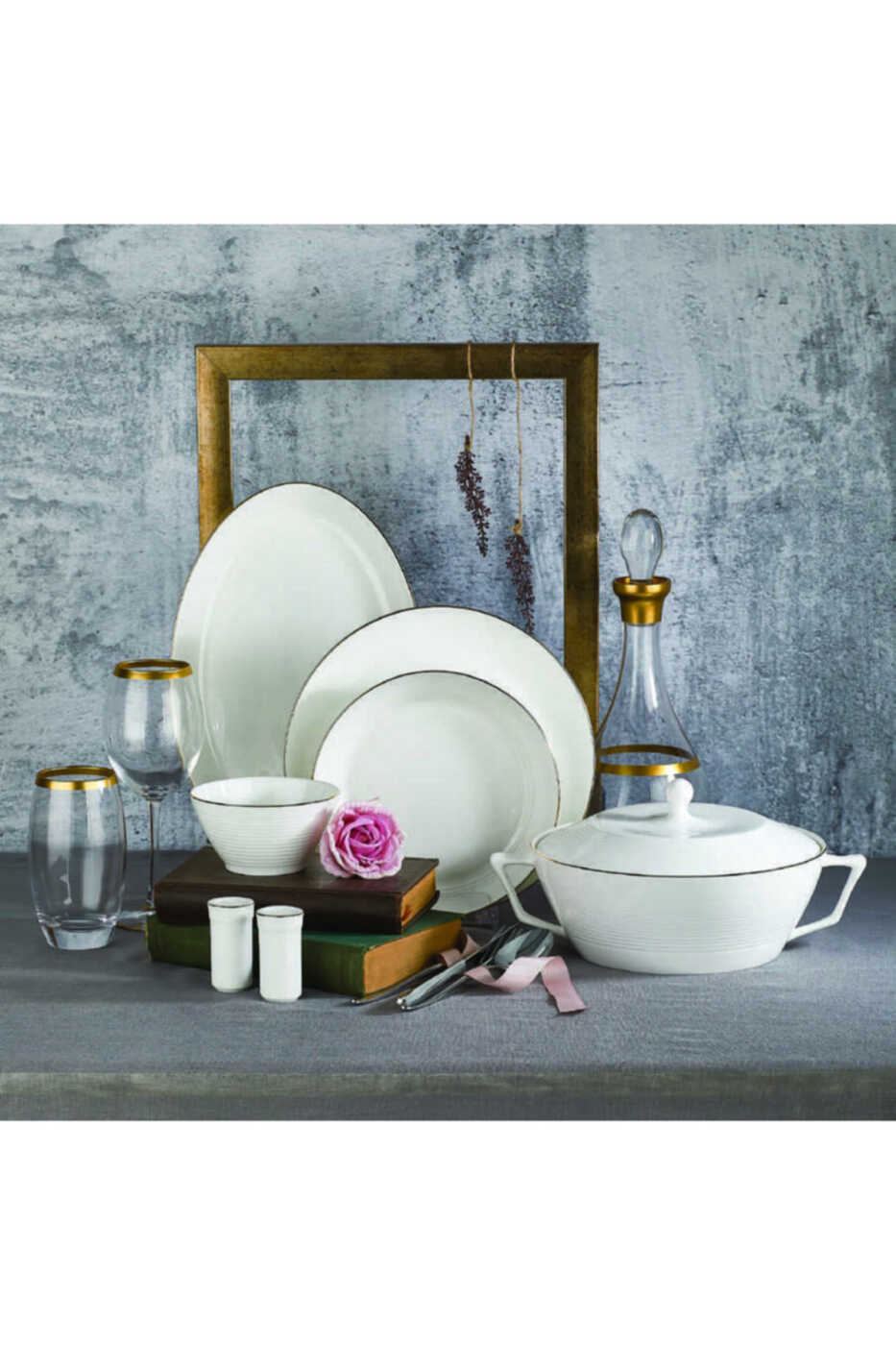 The Lines Collection 58 Piece 12 Person Round Bone Dinner Set will add elegance and sophistication to your tables, making your meals more enjoyable. It also stands out with its durability and practicality. Order now and enhance the elegance of your tables!