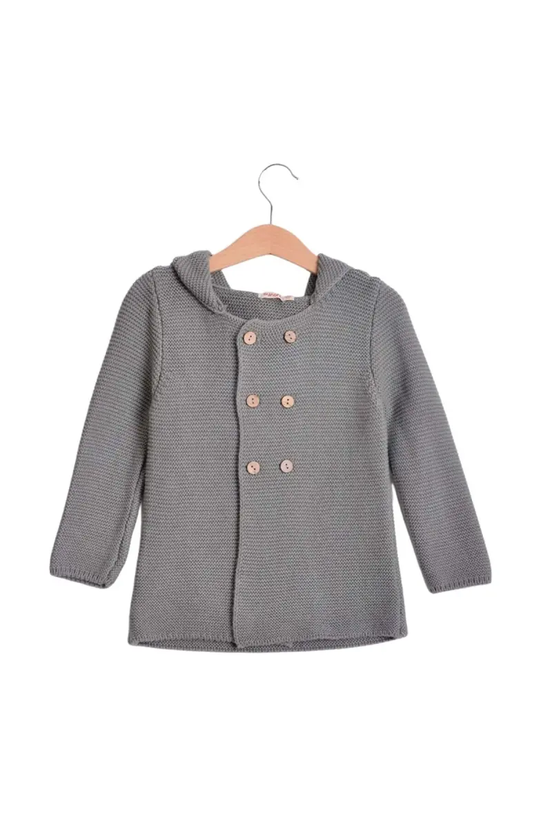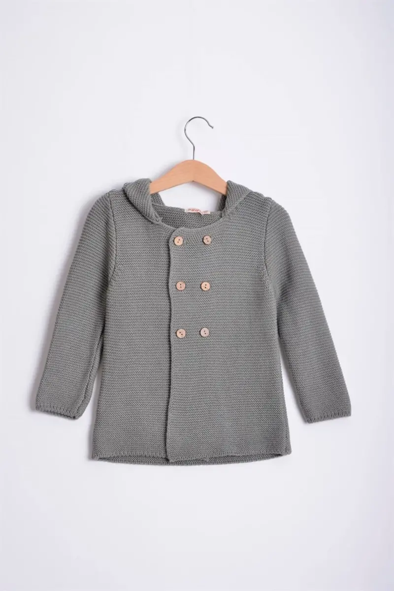 Links Kapşonlu Erkek Bebek Hırka Haki Gri-Haki Gri