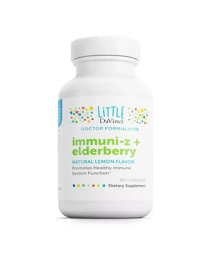 Your children's health and well-being are every parent's priority. That's why Little DaVinci developed Immuni-z + Elderberry to strengthen your children's immune systems and protect them from disease. This special formula combines essential vitamins and minerals that support the immune system, helping your children stay healthy and energetic. With zinc, elderberry, and vitamin D3, Immuni-z + Elderberry provides fast and effective support, especially targeting throat and sinus tissues. These delicious lozenges can be easily consumed without water, making them an ideal choice for children. Our product not only strengthens children's immune systems but also supports respiratory health and improves brain function. The vitamin D and elderberry content support comfortable breathing, while zinc is important for focus and healthy brain function. Little DaVinci Immuni-z + Elderberry helps your children lead healthier, happier, and more active lives by strengthening their immune systems. It provides effective protection against the increased risk of disease, especially during the school year and seasonal transitions. The content of our product consists of the purest and most effective ingredients, and every substance stated on our label is guaranteed. Little DaVinci Immuni-z + Elderberry, manufactured in the USA, is a reliable and effective option for your children's health. Choose Little DaVinci Immuni-z + Elderberry to support the immune system, improve respiratory health, and improve brain function, and contribute to your children's healthy development.
