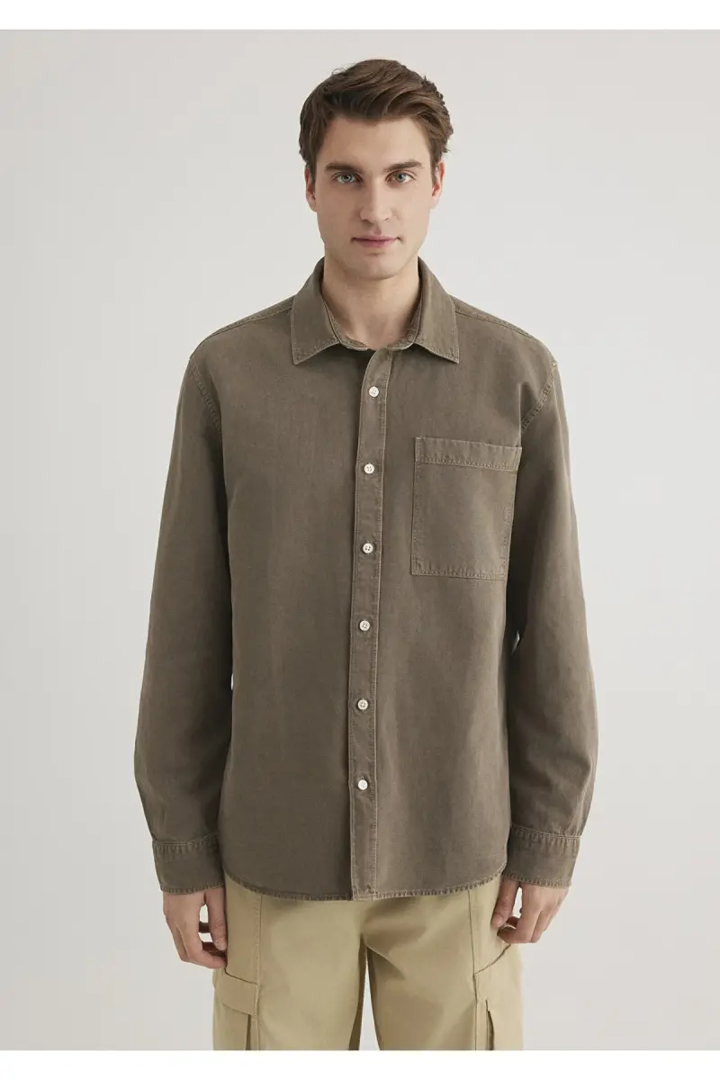 Льняная Смесовая Коричневая Рубашка Tencel Regular Fit**Описание товара**Если вы ищете стильный и удобный вариант, который станет незаменимым в вашем гардеробе, то Льняная Смесовая Коричневая Рубашка Tencel Regular Fit – это то, что вам нужно! Эта эксклюзивная рубашка изготовлена из превосходного сочетания натуральных и экологически чистых материалов. Охлаждающая текстура льна и мягкость Tencel объединяются, обеспечивая комфорт в течение всего дня. Коричневый оттенок легко сочетается с любым стилем, а крой regular fit удобно сидит по фигуре и не ограничивает свободу движений. Эту рубашку можно носить как в повседневной жизни, так и в особых случаях, она дополнит ваш образ. Дышащая ткань из льняной смеси предотвращает потоотделение в жаркую погоду, сохраняя кожу комфортной. Tencel, изготовленный из натуральных волокон, является экологически чистым вариантом и известен своим нежным прикосновением к коже. Сочетание этих двух материалов создает прочную и удобную ткань. Коричневый цвет рубашки идеально подходит для тех, кто любит натуральные тона, и позволяет создавать множество различных комбинаций. Крой regular fit обеспечивает плотное прилегание рубашки к телу, но не ограничивает свободу движений. Этот крой разработан таким образом, чтобы подходить для любого типа фигуры и позволяет чувствовать себя комфортно при ношении рубашки. Сочетайте ее с брюками или шортами, эта рубашка всегда будет выглядеть стильно и современно. В рубашке продуманы все детали. Пуговицы подобраны в соответствии с цветом ткани и придают рубашке элегантный вид. Детали на манжетах подчеркивают элегантность рубашки, а воротник подходит для разных стилей. Вы можете оставить воротник расстегнутым для более непринужденного вида или застегнуть пуговицы для создания более официального стиля. Эта рубашка не только стильно выглядит, но и обеспечивает длительный срок службы. Благодаря качественным материалам и тщательному исполнению вы сможете носить рубашку долгие годы, как в первый день. Вы можете еще больше продлить срок службы рубашки, соблюдая инструкции по стирке. Льняная Смесовая Коричневая Рубашка Tencel Regular Fit – идеальный выбор для тех, кто хочет выглядеть стильно и при этом не жертвовать комфортом. Эта рубашка станет незаменимой частью вашего гардероба и позволит вам всегда чувствовать себя стильно и комфортно.**Характеристики продукта*** Льняная и тенсельная смесовая ткань* Коричневый цвет* Крой Regular fit* Дышащая структура ткани* Экологически чистый и безопасный для кожи материал* Стильные детали пуговиц* Дизайн, подходящий для различных комбинаций* Длительный срок службы* Легко гладить* Можно стирать в машине* Идеально подходит для повседневной носки и особых случаев* Современный и стильный вид* Крой, обеспечивающий свободу движений* Ткань, предотвращающая потоотделение* Легкий и удобный**Дополнительная информация**Чтобы изделие прослужило долго, соблюдайте инструкции по стирке на этикетке. Пожалуйста, не используйте отбеливатель. Гладить при низкой температуре. Возможна химчистка. На модели размер M. Оттенки цвета могут отличаться на изображениях продукта. Это может быть связано со съемочной средой и характеристиками используемого экрана.