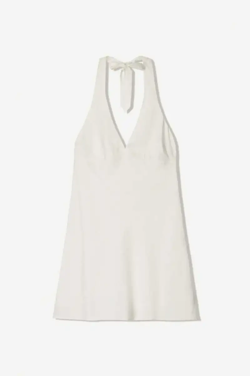 Произведенное с качеством Bershka, это платье сочетает в себе как элегантность, так и комфорт. Благодаря высококачественной ткани оно сохраняет свою прочность в течение длительного времени, а тщательно продуманный крой идеально подчеркивает контуры вашей фигуры. Мини-длина выгодно подчеркивает ваши ноги, делая вас визуально выше и стройнее. Деталь с воротником-халтер изящно открывает ваши плечи и спину. Белый цвет платья легко сочетается с любыми аксессуарами и обувью, позволяя вам выглядеть стильно и модно в любой обстановке. Это идеальный выбор для любого мероприятия, от летних вечеринок до повседневных прогулок.