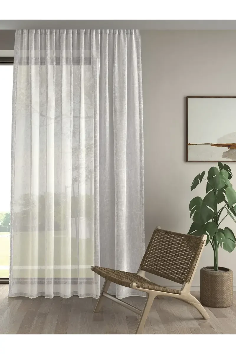 Льняная тюлевая занавеска экрю: Не требует глажки, стильная и удобная!