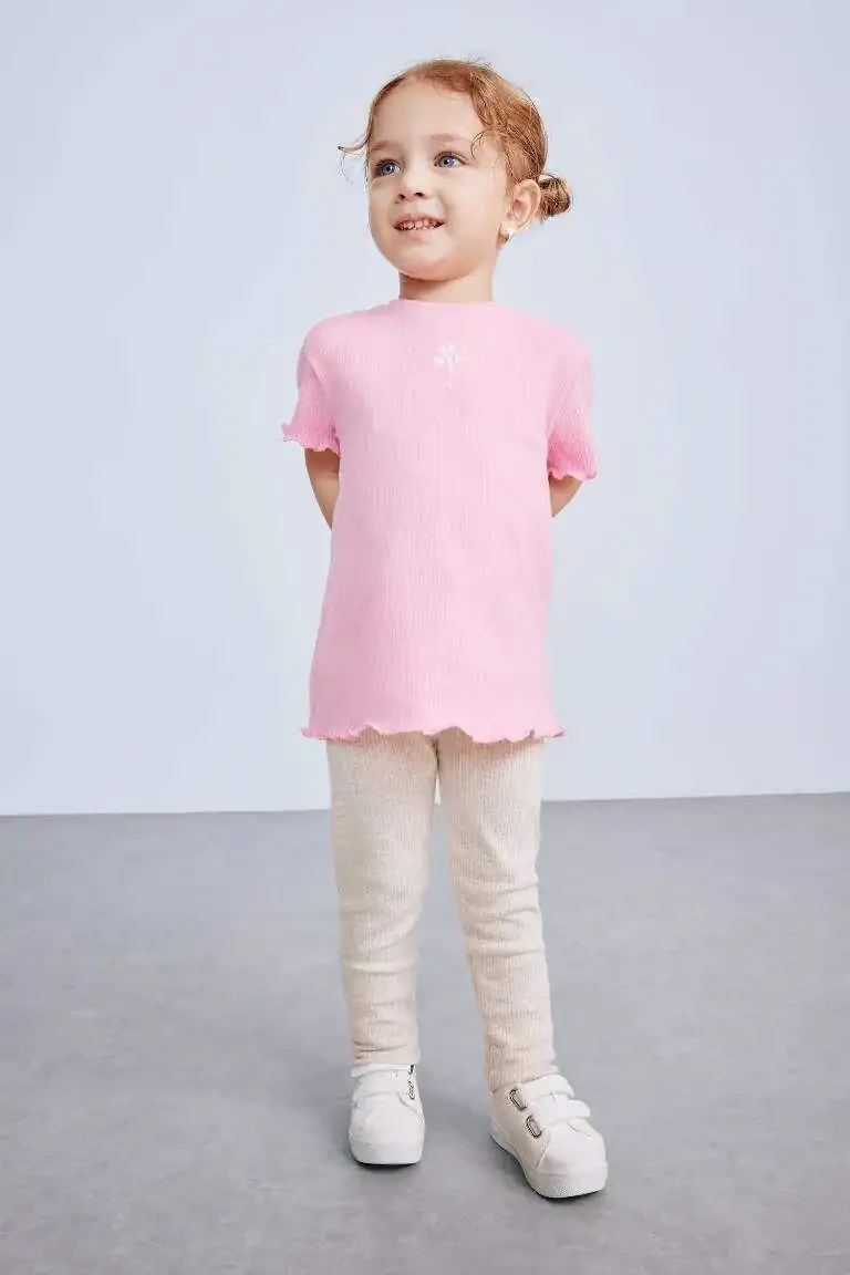 Ребристая текстура подчеркивает элегантность леггинсов, а кашемировая ткань обеспечивает мягкость и комфорт для нежной кожи вашей малышки. Прямой крой дает свободу движений, гарантируя, что ваша маленькая девочка будет чувствовать себя комфортно во время игр.