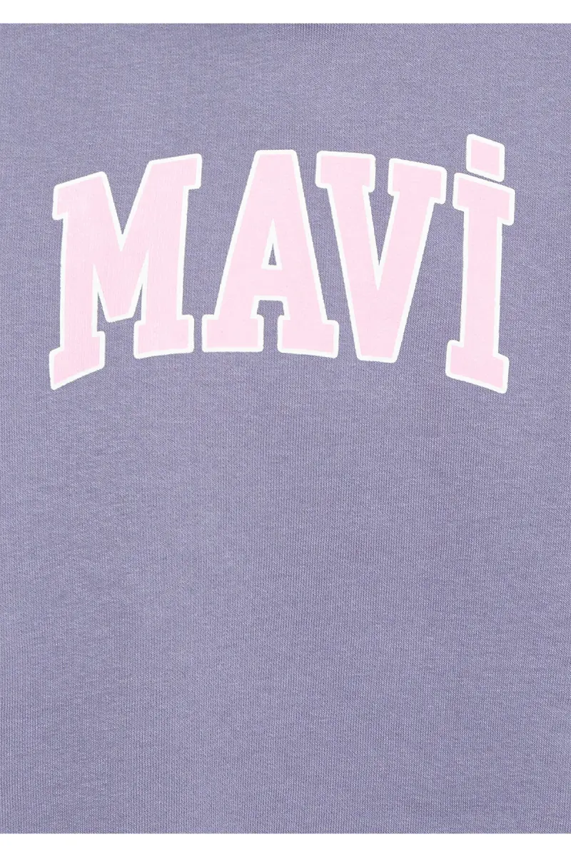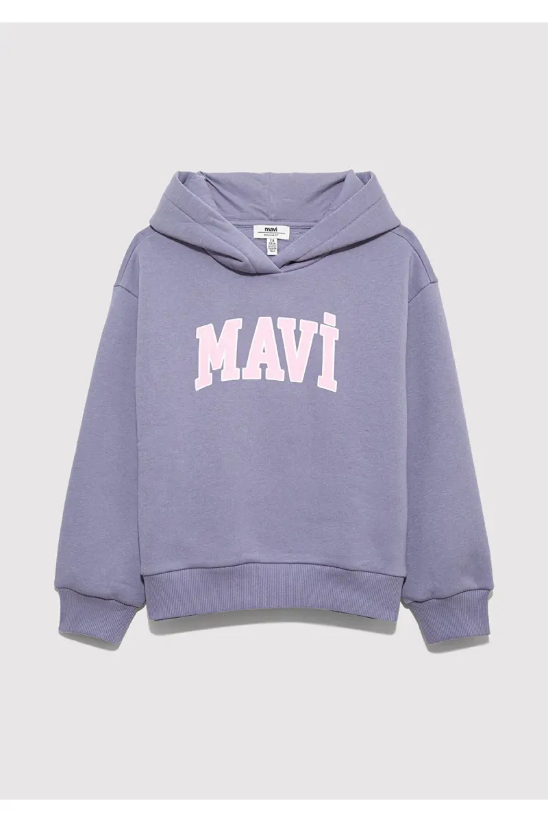Logo Baskılı Kapüşonlu Mor Sweatshirt 7610035-88095-Mor