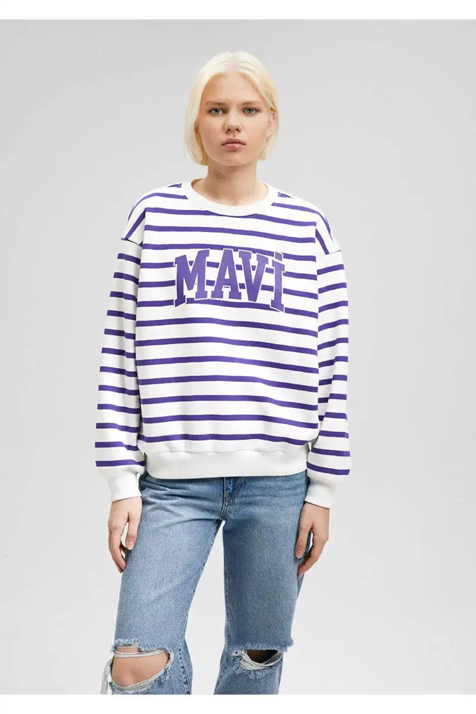 Günlük stilinizi şık ve rahat bir şekilde tamamlayacak Logo Baskılı Mor Çizgili Sweatshirt ile tanışın! Yumuşak ve kaliteli kumaşıyla tüm gün konfor sunarken, şık mor çizgileri ve zarif logo baskısıyla da tarzınızı yansıtmanıza yardımcı olur.