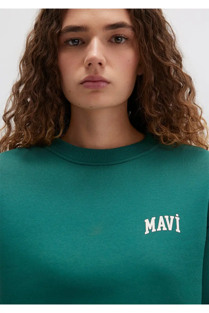 Logo Baskılı Yeşil Crop Sweatshirt 1611601-71874-Yeşil