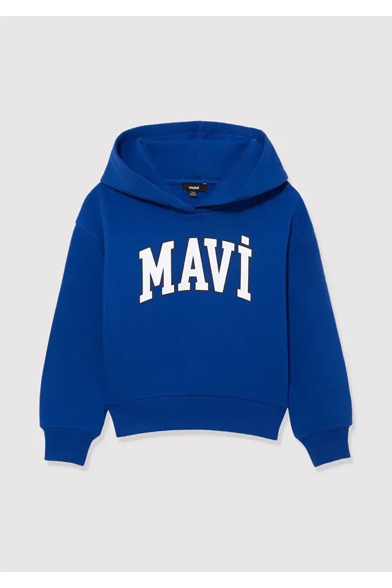 Mavi Logo Baskılı Kapüşonlu Sviter | Uslubdor va qulay