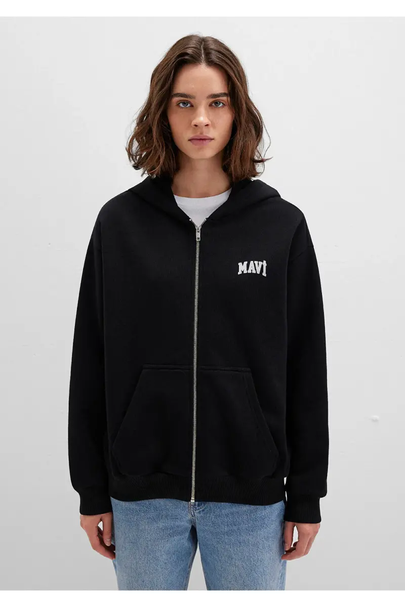 Kundalik hayotingizda, sport mashg'ulotlarida yoki do'stlaringiz bilan uchrashuvlarda zamonaviy va qulay ko'rinish uchun Logo Bosilgan Kaputli Fermuarli Qora Svitshotni tanlang.