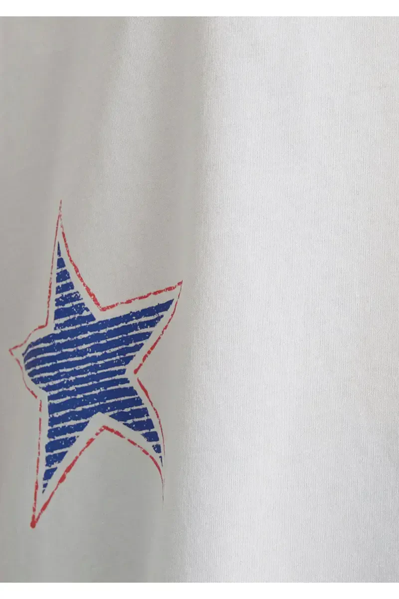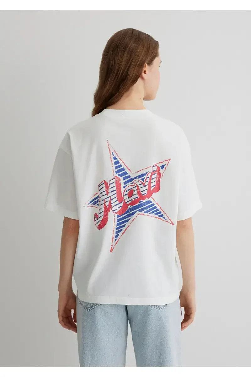 Oversize Logotipli Paxta Futbolka - Velosiped Yoqali Keng Kesim