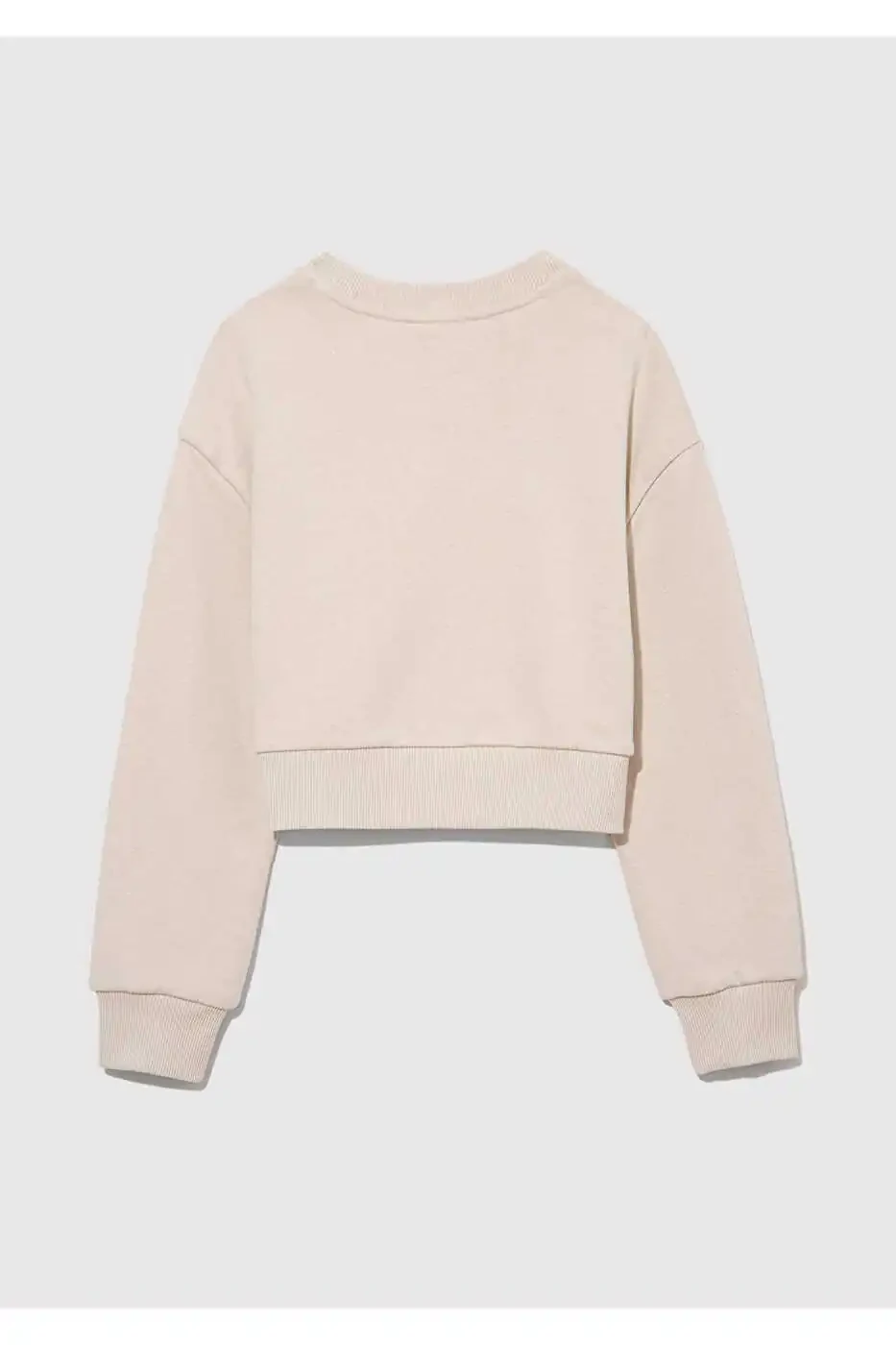 **Logo Printed Beige Crop Sweatshirt 7s10078-70072**