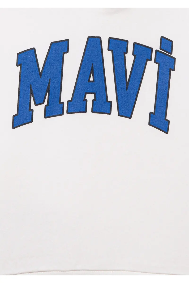 Mavi Logo Bosilgan Oq Hoodi - Qulaylik va Zamonaviylik