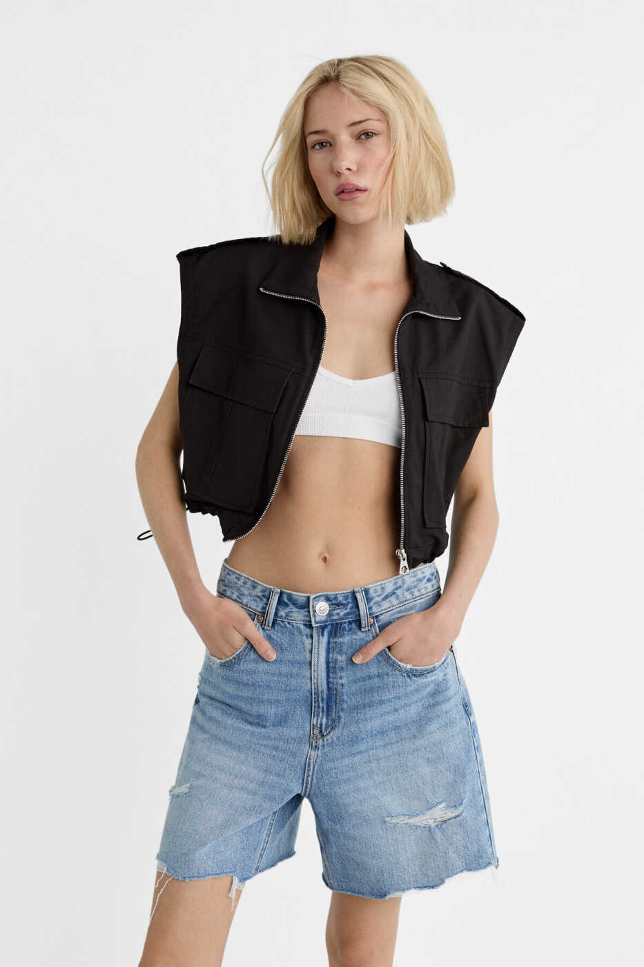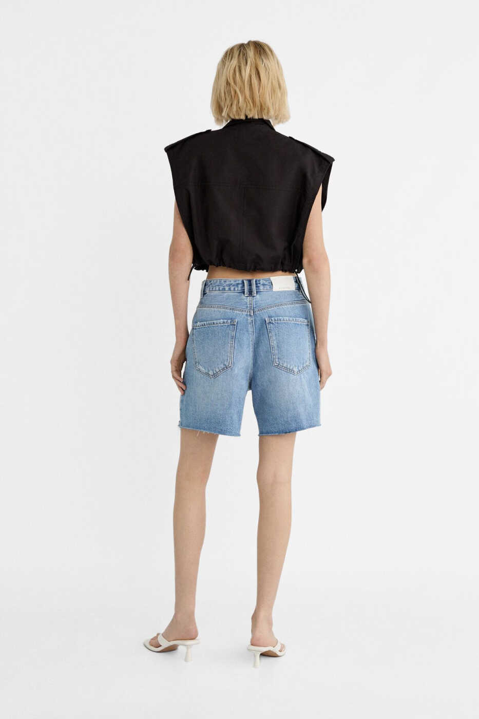 Long denim shorts can be combined wonderfully with t-shirts, blouses, shirts, or crop tops. Complete the look with sneakers or sandals for a stylish and comfortable look.