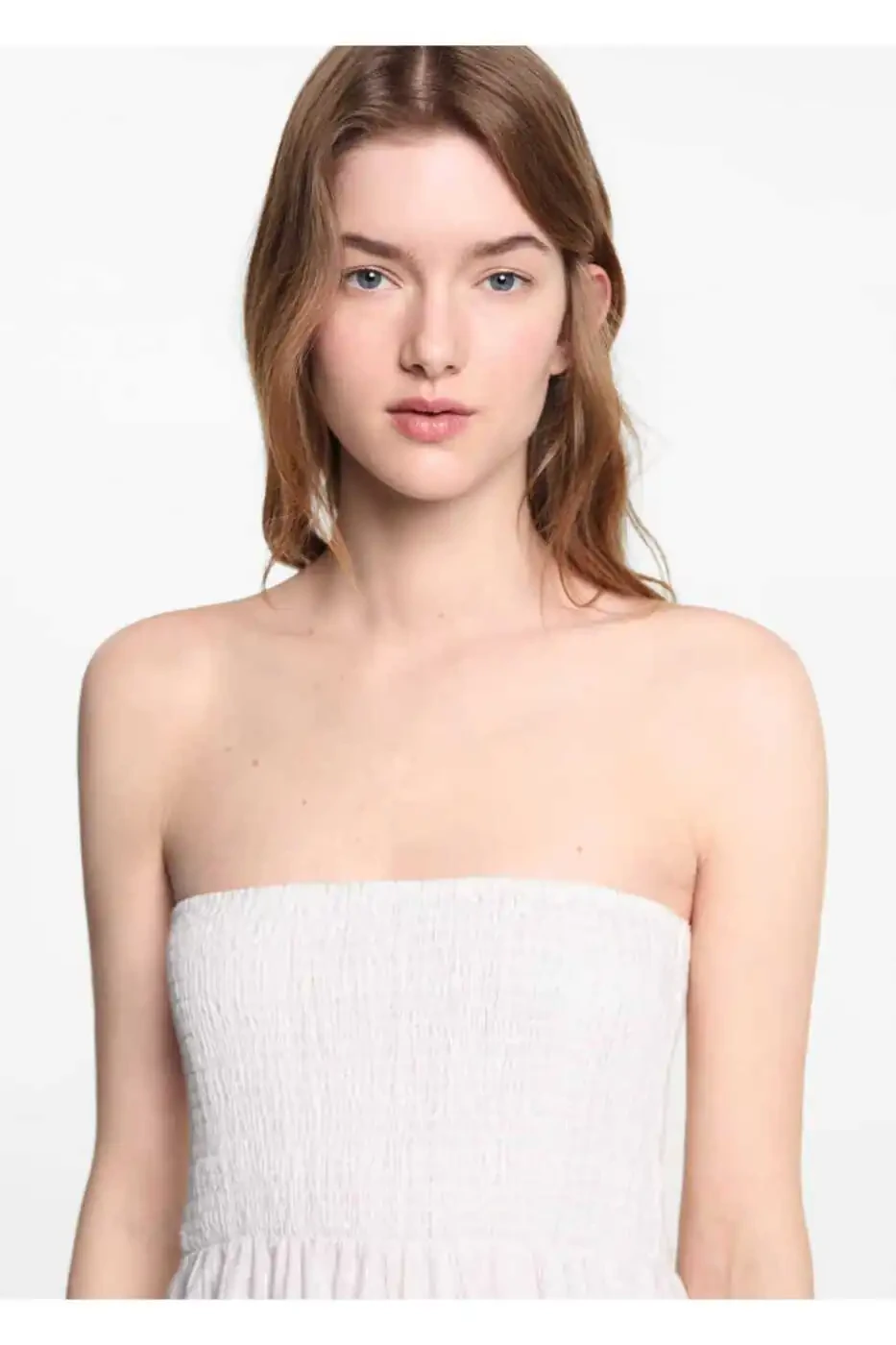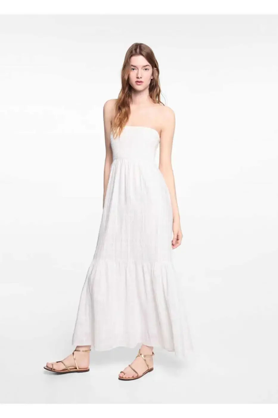 With its youthful and energetic design, the Trendyol Lurex Fabric Maxi Dress appeals to all age groups, offering both comfort and style for everyday wear. This dress adds a feminine touch with its ruffled details, providing an elegant look without restricting your freedom of movement. Its breathable fabric, made from 99% cotton and 1% copper, ensures a comfortable feel all day long. The stretchy and soft knit fabric type adapts perfectly to your body shape, allowing you to move comfortably. The strapless neckline design frees your shoulders, providing a cool feeling in the summer months, while the tulle weave adds a touch of lightness. Thanks to its standard length, it suits different body types, allowing you to maintain a stylish stance in any setting. Finally, the easy-care washing instructions help preserve the dress's quality, ensuring its longevity.