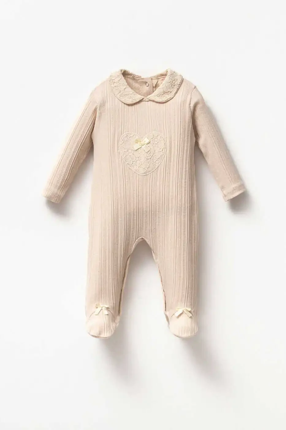 This cute baby romper, a perfect gift option for your little princess, is made from soft and comfortable 100% cotton fabric. It is gentle on your baby's delicate skin and hypoallergenic. With its long sleeves and footed design, your baby will have a warm and stylish look.