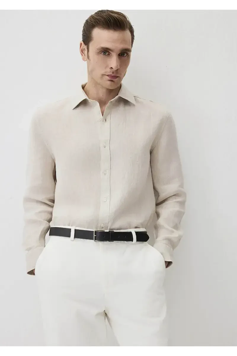 Long Sleeve Beige Men's Shirt, Cotton, Plain, Classic Fit**Product Description**Experience elegance and comfort with the Long Sleeve Beige Men's Shirt, which will be an indispensable part of your wardrobe. This shirt, which will help every man look stylish, is an ideal choice for both daily use and special occasions. The warm and natural tone of beige color easily adapts to all kinds of combinations, offering you a wide range of uses. Thanks to the breathable structure of cotton fabric, you will feel comfortable all day long. This fabric, which does not sweat and does not irritate your skin, provides a great advantage, especially in hot weather. The long-sleeved design allows you to maintain your style without sacrificing your elegance in cool weather. Cuff details add a modern and sophisticated touch to the shirt, while the classic cut fits your body perfectly and creates a stylish silhouette. The plain pattern makes the shirt versatile. You can either create a sporty look with jeans or create a more formal style with fabric trousers. You can also personalize your style with your accessory choices. For example, you can complete your combination with a stylish watch and a leather belt to attract attention in the office environment. For weekend trips, you can combine it with a sporty jacket and comfortable shoes to maintain your comfort without sacrificing your elegance. The classic fit cut adapts to every body type and offers comfortable use. This cut, which does not restrict your freedom of movement, allows you to feel comfortable all day long. The button details of the shirt are made of high-quality and durable material. Designed for long-lasting use, this shirt will maintain its original appearance for a long time if washing instructions are followed. Long Sleeve Beige Men's Shirt prioritizes not only elegance but also ease of use and durability. This shirt, which will be one of the basic pieces of your wardrobe, helps you to always look stylish and well-groomed. Do not miss this shirt, which is a perfect gift option for yourself and your loved ones. If you are looking for a shirt that will reflect your style, prioritize comfort and adapt to any environment, the Long Sleeve Beige Men's Shirt is for you. Order now and take your place in your wardrobe! Enjoy living elegance and comfort together. With this shirt, you will experience the privilege of being stylish anytime and anywhere.**Product Features*** Long Sleeve* Beige Color* Men's Shirt* Cotton Fabric* Plain Pattern* Classic Fit**Additional Information**The model is wearing size M. Please follow the washing instructions on the label to use your product for a long time. Colors may vary due to light differences in studio shots.