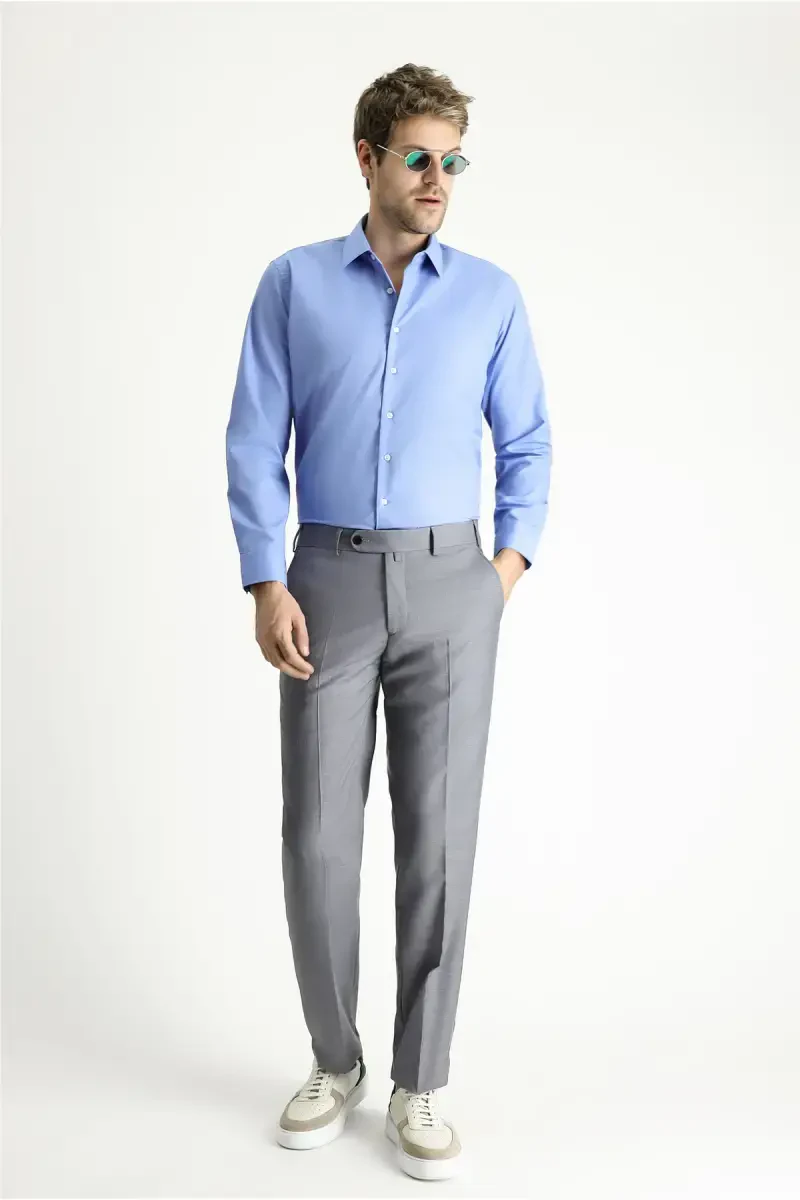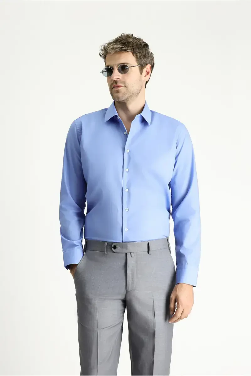 Long Sleeve Slim Fit Narrow Cut Non-Iron Wrinkle-Free Cotton Shirt combines elegance and comfort with its Aqua Blue color. Thanks to its cotton fabric, it offers comfortable use all day long, while its non-iron feature makes your life easier. The slim fit cut provides a modern and dynamic look with its body-hugging structure. It is an ideal choice for both daily use and special occasions.Product DescriptionLong Sleeve Slim Fit Narrow Cut Non-Iron Wrinkle-Free Cotton Shirt, with its Aqua Blue color, is a candidate to be an indispensable part of your wardrobe! This shirt is designed considering the needs of the modern man. It is an ideal choice for those who want to look stylish and feel comfortable all day long. Thanks to the breathable structure of its cotton fabric, it prevents sweating and keeps your skin fresh all day long. Its non-iron feature saves you time in your busy schedule. You can achieve a stylish look without the hassle of ironing while getting ready in the morning. The slim fit cut creates a modern and fit silhouette with its body-hugging structure. This cut allows you to easily use the shirt with both sporty and classic combinations. The Aqua Blue color offers a lively and fresh look and easily adapts to different colored trousers and jackets. The long sleeves of the shirt make it wearable in all seasons, while the cuff details complete your elegance. It helps you reflect your style in every environment, from business meetings to dinners, from special invitations to daily use. Thanks to its quality stitching and durable fabric, it offers long-lasting use. This shirt is not just a piece of clothing, but also a way to express your style and personality. The Aqua Blue color boosts your energy and adds a positive atmosphere to your environment. You can easily combine it with other pieces in your wardrobe and create different styles. Whether you get a sporty look with jeans or complete your elegance with a classic suit, this shirt will accompany you in every situation and ensure that you reflect your style in the best way. Enjoy both comfort and elegance with the Long Sleeve Slim Fit Narrow Cut Non-Iron Wrinkle-Free Cotton Shirt. You can't think of a better option to feel good and express your style.Product Features* Long Sleeve* Slim Fit / Narrow Cut* Non Iron / Wrinkle-Free* Cotton Fabric* Aqua Blue ColorAdditional InformationThe shirt's fabric content is 100% cotton. Machine washable. Please follow the washing instructions. The size on the model is medium.