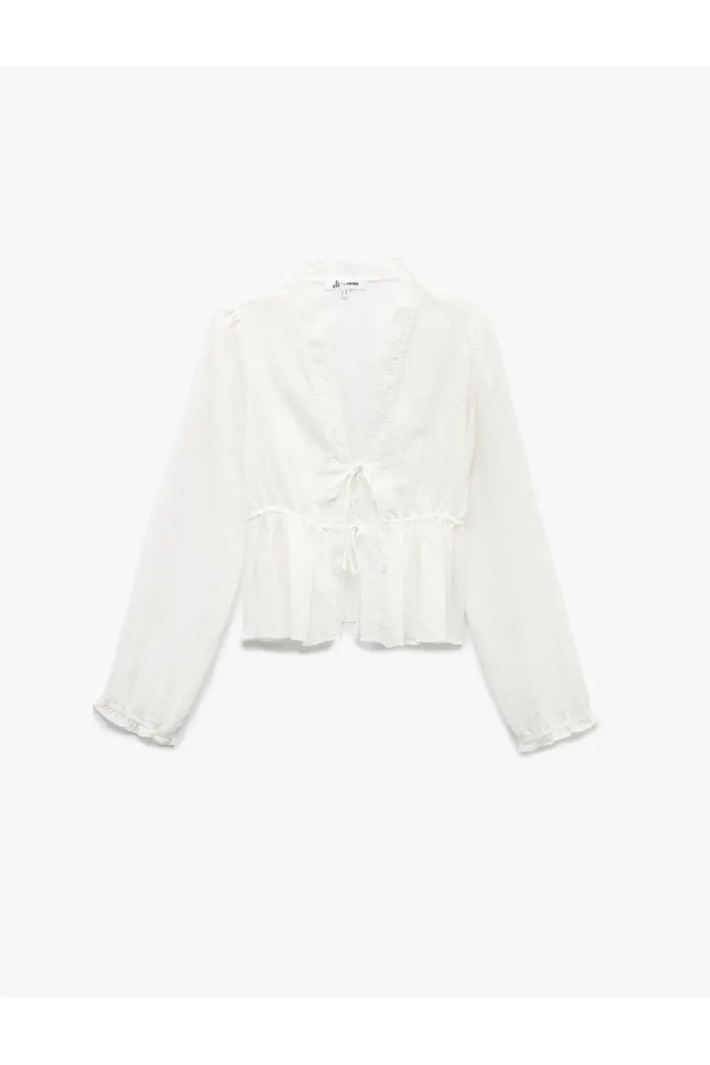 Our Long Sleeve V-Neck Viscose Blend Lace-up Scalloped Trim blouse features a special design that combines elegance and comfort. This blouse, which you can easily choose for any occasion from your daily use to special events, is a candidate to be an indispensable part of your wardrobe. The relaxed fit of the blouse offers freedom of movement all day long, while the viscose blend fabric provides a soft touch to your skin. The V-neck cut adds an elegant and feminine look, while the long sleeves offer comfortable use in cool weather. The lace-up detail on the front of the blouse adds a different touch to the design, while the scalloped trim highlights the elegance. These details help you create a unique style by moving the blouse away from the ordinary. The Long Sleeve V-Neck Viscose Blend Lace-up Scalloped Trim blouse appeals to every taste and body type with its different color and size options. Whether you combine it with jeans to achieve a daily elegance, or combine it with skirts to achieve a more special look. This blouse allows you to reflect your style in any situation. Thanks to its high-quality material and careful workmanship, it offers a long-lasting use. It is a timeless piece that you will love to wear in your closet for many years. The breathable structure of the viscose blend fabric prevents sweating and keeps you fresh all day long. The blouse is also very easy to care for; You can wash and iron it at low temperature to maintain its original appearance. The Long Sleeve V-Neck Viscose Blend Lace-up Scalloped Trim blouse is not just a piece of clothing, but also a style statement. You should definitely try this blouse to feel special and highlight your elegance. We are sure that it will be the most loved piece of your wardrobe. This blouse, every detail of which has been carefully thought out, will be appreciated by stylish women. Combining classic and modern lines, this design ensures that you attract attention in any environment.