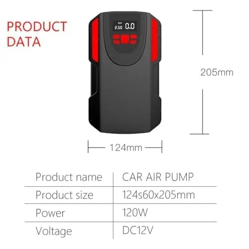 Цифровой насос для шин: 12 В, 150 фунтов на кв. дюйм, светодиодная подсветка, автоматическое отключение