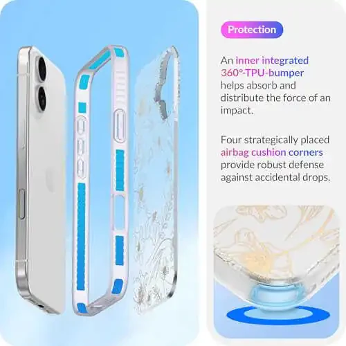 **FAQAT Apple iPhone 16 bilan mos.** Nurlarni ushlab, jozibali ta'sir yaratadigan murakkab oltin folga urg'ulariga ega go'zal gulli dizayn. Aniq kesmalar yangi Kamera Boshqarish tugmasiga osongina kirish imkonini beradi. Ichki birlashtirilgan zarbani yutadigan bamper sizning yangi telefoningizni 10 futgacha balandlikdan tushishdan asraydi. Yuqoriga ko'tarilgan qirralar kamerani va ekranni tirnalish va tushishdan saqlaydi.