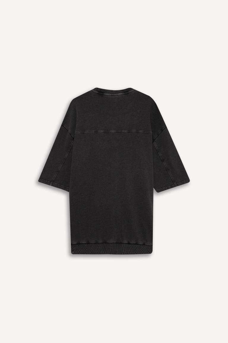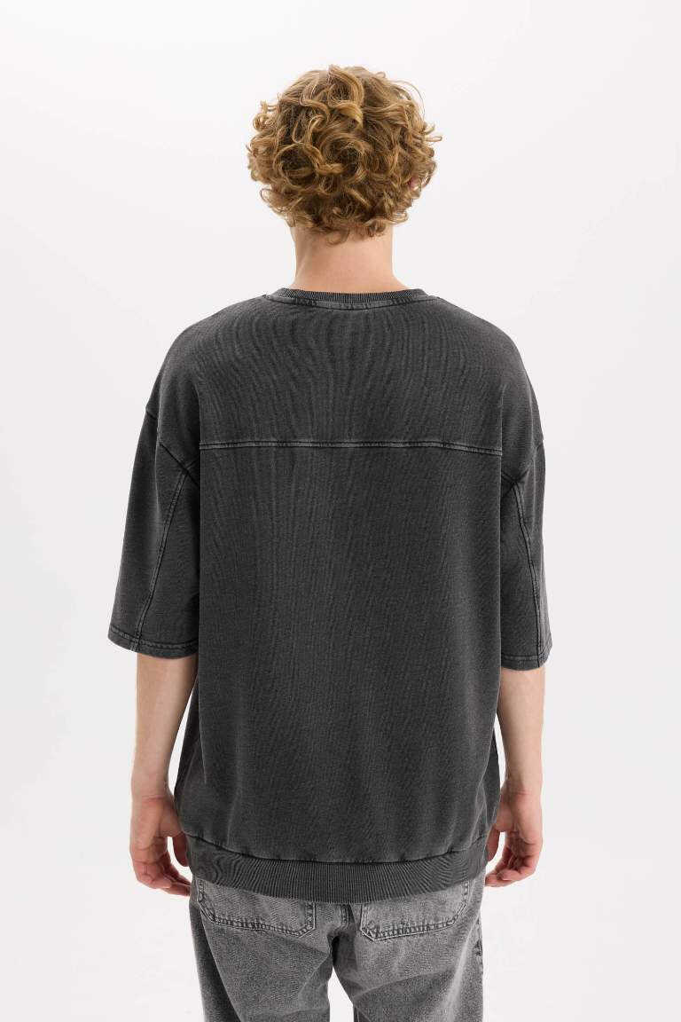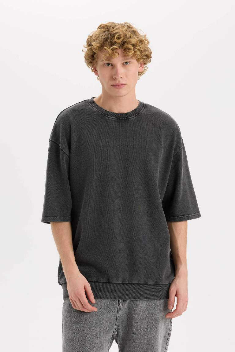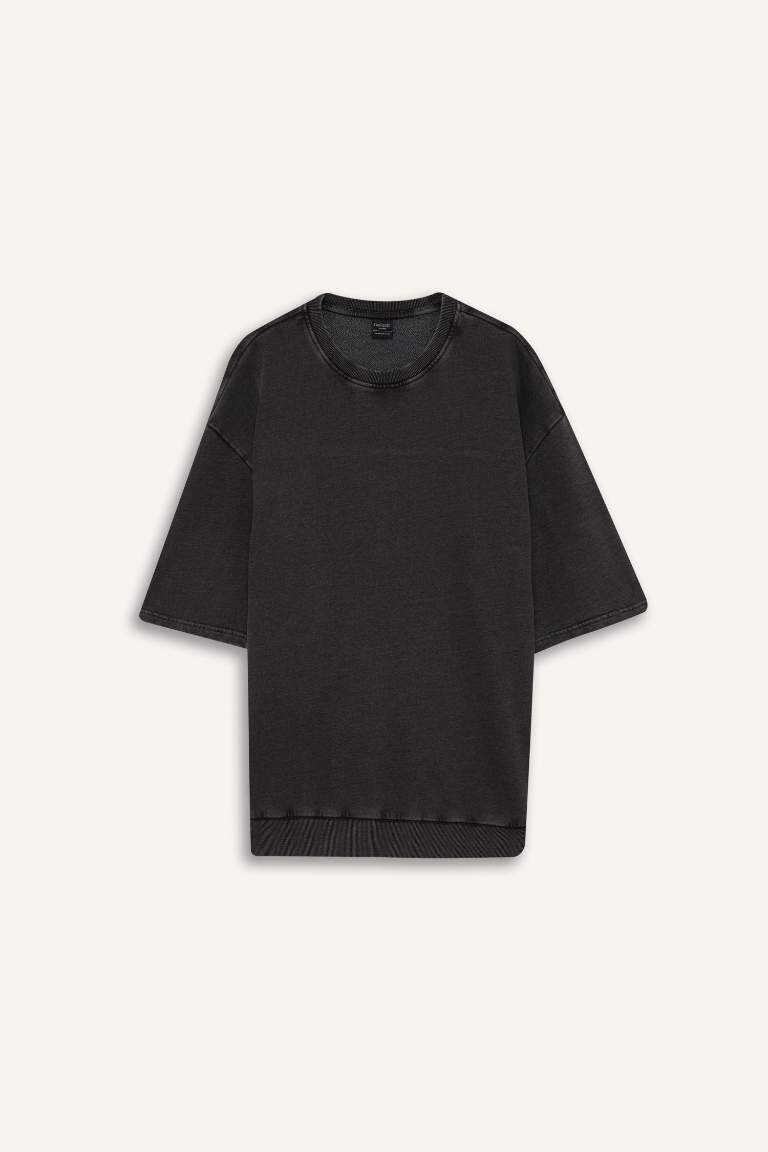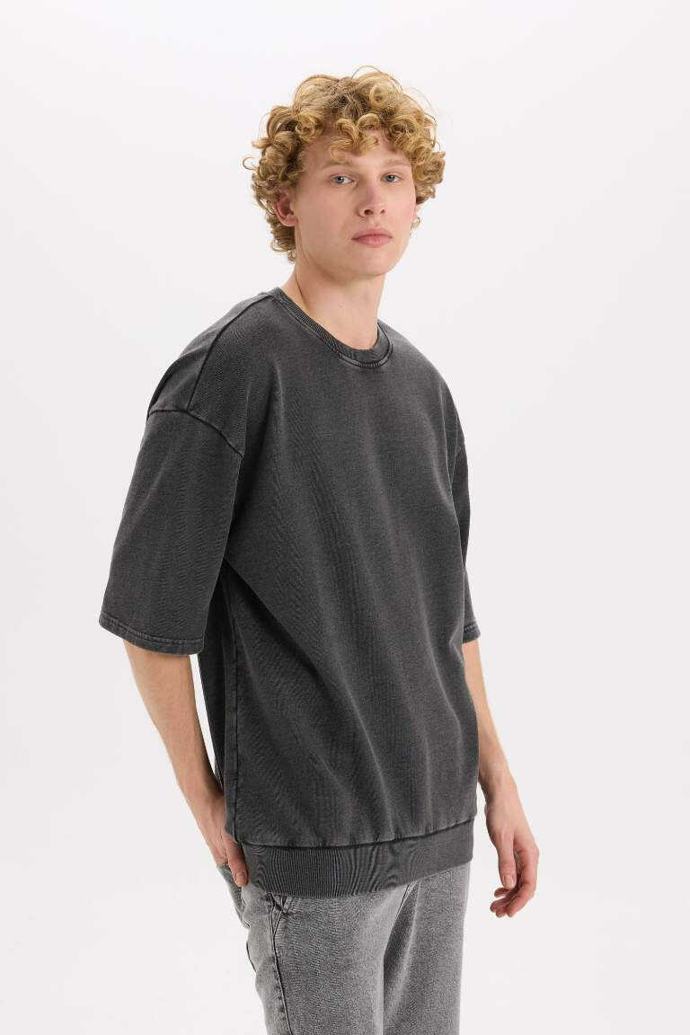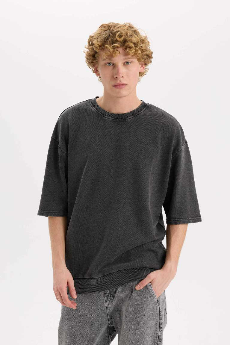 Loose Fit Crew Neck Washed Out Short Sleeve T-Shirt Anthracite