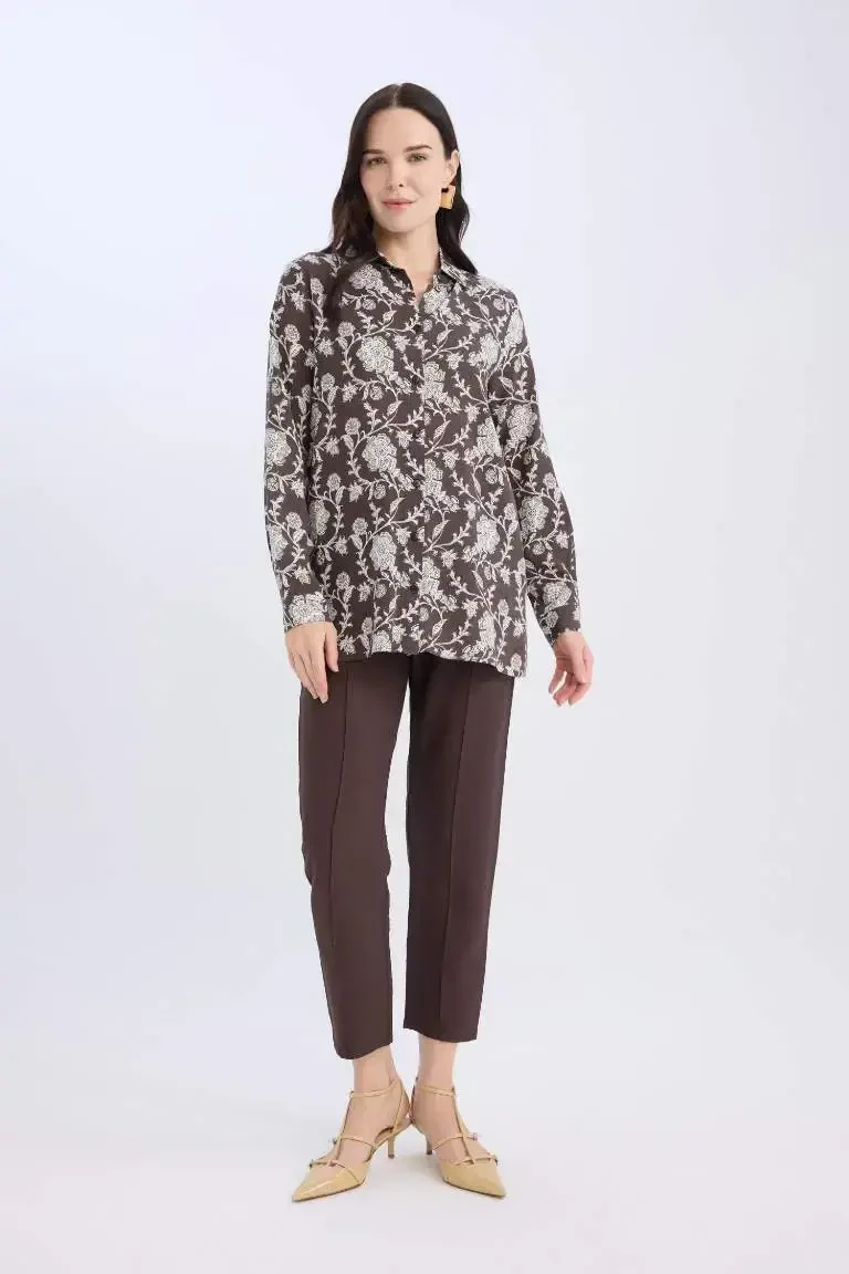 Shkafingizning ajralmas qismiga aylanadigan Loose Fit naqshli uzun qisma ko'ylak tunikasi bilan tanishing! Jigarrang rangdagi bu zamonaviy tunika qulaylik va zamonaviy dizaynni birlashtirib, har qanday muhitda ko'zni qamashtiradi. Defacto kafolati bilan ishlab chiqarilgan ushbu tunika 100% viskoza matosi tufayli kun bo'yi nafas oladigan va engil foydalanishni ta'minlaydi. Ko'ylak yoqasi detali va uzun qisma dizayni uni klassik va sport kombinatsiyalaringiz uchun ideal asosiy qismga aylantiradi. Tekis etak detali tunikaning nafis siluetini to'ldiradi, keng bichimli kalipi esa harakat erkinligingizni cheklamaydi. Kundalik hayotda jinsilar bilan birlashtirasizmi yoki maxsus tadbirda zamonaviy shimlar bilan to'ldirasizmi, bu tunika har doim sizning uslubingizni eng yaxshi tarzda aks ettirishga yordam beradi. Bahor va yoz oylarida salqin saqlaydigan tuzilishi bilan ajralib turadigan ushbu tunika, shuningdek, kuz va qish oylarida ham boshqa kiyimlar bilan osongina birlashtirilishi mumkin. Model ustidagi S o'lchami 1,74 sm bo'yli modelning 84/62/90 o'lchamlariga mos keladi. O'lchamni tanlashda ikkilansangiz, mahsulot uzunligi o'lchamlariga qarab, sizga eng mos o'lchamni osongina topishingiz mumkin. Nafosat va qulaylikni bir vaqtning o'zida qidirayotgan ayollar uchun mo'ljallangan ushbu tunika kundalik foydalanish va maxsus kunlar uchun ajoyib tanlovdir. Esda tuting, mahsulotni uyingizda sinab ko'rishingiz va o'lcham mos kelmasa (paypoq, ichki kiyim va taqinchoqlardan tashqari) uni do'konlarimizdan bepul almashtirishingiz mumkin. Ushbu noyob tunika bilan o'z uslubingizni aks ettiring va har doim o'zingizni zamonaviy va qulay his eting!