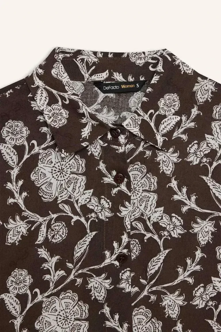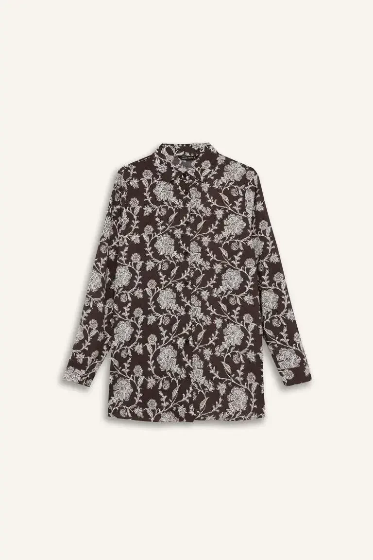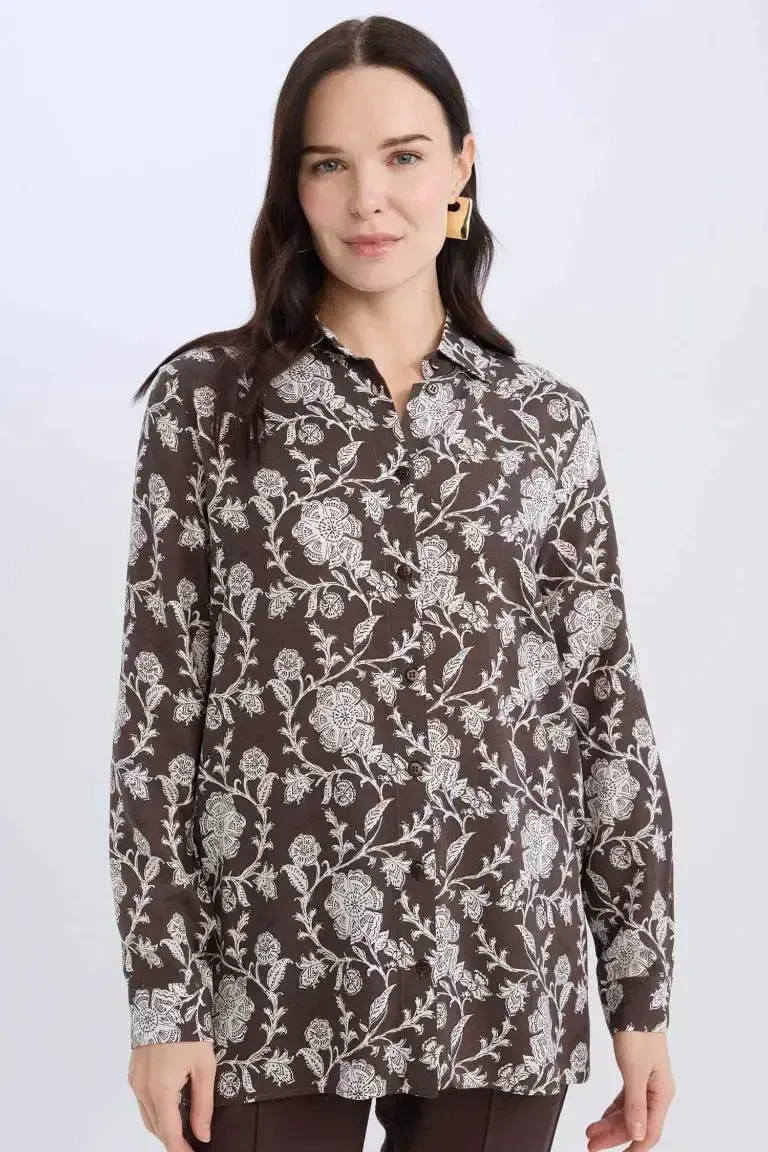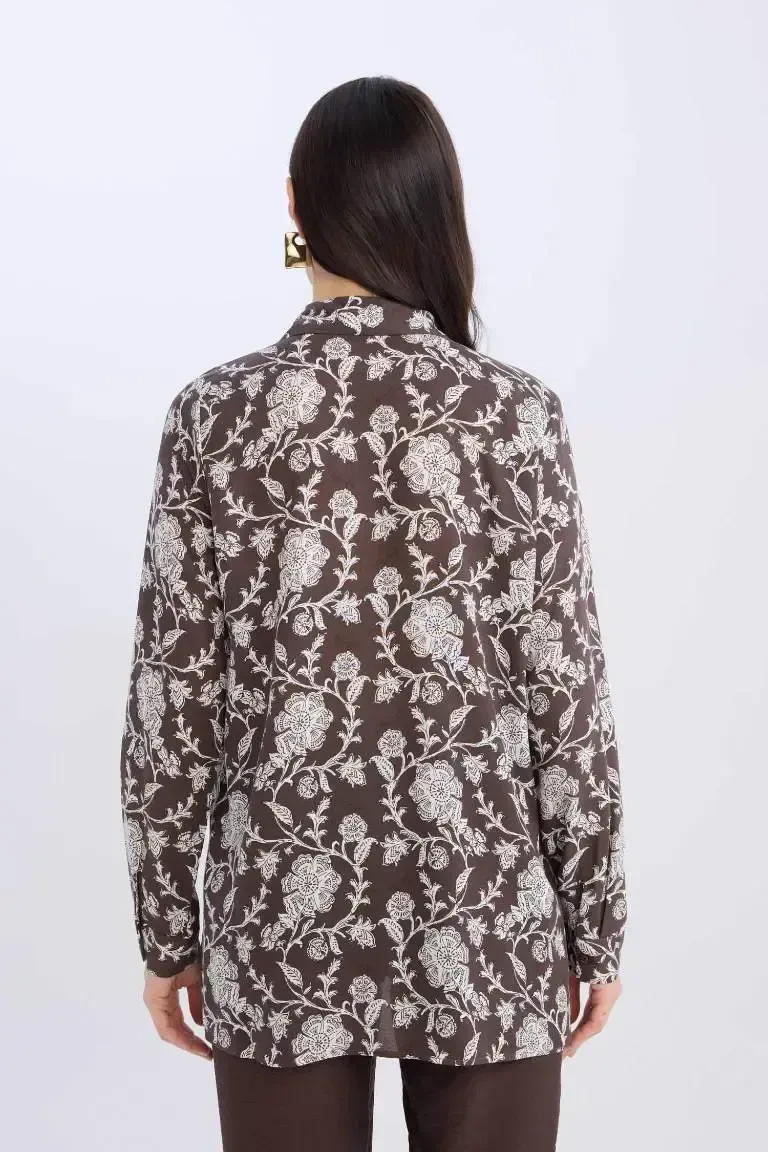 Meet the Loose Fit Patterned Long Sleeve Shirt Tunic, a must-have for your wardrobe! This stylish tunic in shades of coffee combines comfort and modern design, ensuring you dazzle in any setting. Produced with Defacto assurance, this tunic offers a breathable and lightweight experience all day long thanks to its 100% viscose fabric. The shirt collar detail and long sleeve design make it an ideal basic piece for both classic and sporty combinations. The straight leg detail complements the tunic's elegant silhouette, while the loose fit pattern does not restrict your freedom of movement. Whether you combine it with jeans in daily life or complete it with elegant trousers for a special occasion, this tunic will always help you reflect your style in the best way. Standing out with its cooling structure in spring and summer, this tunic can also be easily combined with your other clothes in autumn and winter. The S size on the model is suitable for the 84/62/90 measurements of the 1.74 cm tall model. If you are undecided about size selection, you can easily find the most suitable size for you by looking at the product length measurements. Designed for women who seek elegance and comfort together, this tunic is an excellent choice for both daily use and special occasions. Remember, you can try the product at home and exchange it free of charge in our stores in case of size mismatch (except for socks, underwear and jewelry). Reflect your style with this unique tunic and always feel stylish and comfortable!