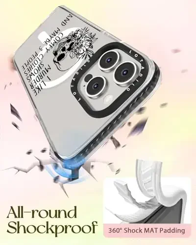 Подчеркните свой стиль с чехлом Lotadilo для iPhone 15 Pro! Этот чехол, разработанный специально для женщин и молодых девушек, сочетает в себе эстетику и функциональность. Детали дизайна Kawaii добавляют вашему телефону очаровательный штрих, а магнитная кольцевая подставка, совместимая с Magsafe, обеспечивает простоту использования. Этот TPU чехол с рисунками черепа и скелета не только защищает ваш iPhone 15 Pro, но и позволяет выразить свой личный стиль. Этот чехол - не просто аксессуар, но и дизайн, который заботится о безопасности вашего телефона. Высококачественный материал TPU обеспечивает превосходную защиту от ударов и царапин, а точные вырезы обеспечивают легкий доступ ко всем портам и кнопкам. Чехол Lotadilo - идеальный выбор для тех, кто не хочет жертвовать стильным внешним видом, защищая свой телефон от падений. Этот чехол - самый забавный способ персонализировать свой телефон и придать ему уникальный вид, а также облегчить вашу жизнь благодаря своим полезным функциям. Благодаря магнитной подставке вы можете освободить руки при просмотре видео или видеозвонках. Кроме того, вы можете легко заряжать свой телефон в любое время благодаря функции беспроводной зарядки. Чехол Lotadilo для iPhone 15 Pro - отличный выбор для тех, кто ищет стильный и практичный аксессуар. Защитите свой телефон, отражая свой стиль, и почувствуйте разницу с Lotadilo!