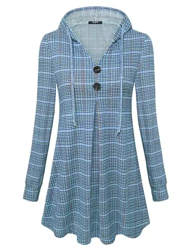 Сочетайте комфорт и стиль с женскими туниками с длинным рукавом и капюшоном Lotusmile, свитшотом-худи с пуловером и пуговицами. Эта туника изготовлена из ткани, состоящей из 95% полиэстера и 5% спандекса, что делает ее мягкой, удобной и легкой. Хлопковая текстура ткани, толщина которой соответствует толщине футболки, позволяет носить ее как отдельно, так и легко сочетать с другими слоями одежды. Эта туника-худи с длинным рукавом идеально подходит для осенних и зимних месяцев и станет незаменимой вещью в вашем гардеробе. Эта туника-свитшот в классическом стиле с регулируемым капюшоном на шнурке отличается шикарным внешним видом благодаря А-образному плиссированному дизайну спереди. Благодаря длинному крою вы сможете наслаждаться как комфортом, так и элегантностью. С помощью этой туники-худи вы сможете безупречно продемонстрировать свою фигуру и привлечь внимание в любой обстановке. Эта туника-свитшот идеально подходит для ношения с леггинсами и обеспечивает комфорт в течение всего дня благодаря мягкой, дышащей и эластичной ткани. Простой и стильный дизайн позволяет легко сочетать ее с леггинсами, узкими джинсами, туфлями на каблуках, ботинками или кроссовками. Независимо от того, находитесь ли вы в Калифорнии, Техасе, Флориде или Нью-Йорке, ткань и толщина этой туники-свитшота идеально подходят для осенних месяцев. Вы можете носить ее отдельно в начале осени или сочетать с длинным пальто зимой. Эта удобная туника с капюшоном идеально подходит для дома, улицы, путешествий, спортзала, бега и повседневной носки. Кроме того, это будет отличный вариант подарка для вашей жены, подруги, матери, дочери или друзей на День Благодарения и Рождество. Чтобы сохранить качество ткани и пуговиц, рекомендуется использовать отдельный мешок для стирки при машинной стирке. Подчеркните свой стиль и комфорт с помощью Lotusmile!