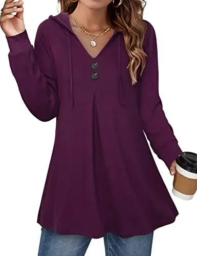Experience style and comfort with Lotusmile Women's Long Sleeve Hooded Tunic Tops, Button-Down Loose Sweater Hooded Sweatshirt. This tunic is a perfect choice for your daily wear. You will feel comfortable all day long thanks to its high-quality material and comfortable cut. Whether you are relaxing at home or meeting friends outside, this hooded tunic will always make you look stylish and comfortable. Its A-line design elegantly reveals your body lines, while its long-sleeved structure keeps you warm in cold weather. The hooded and buttoned details add a modern touch to the tunic, and you can easily find the one that suits your style with different color options. This tunic can be easily combined with leggings, skinny jeans, heels, boots, or sneakers. It will be an indispensable part of your wardrobe in autumn and winter. You can wear it alone or with a long coat. This tunic, which will accompany you on your travels, while doing sports, or in your daily activities, combines comfort and elegance. Lotusmile Women's Long Sleeve Hooded Tunic Tops are also a great gift option for your loved ones. This gift, which you can give to your wife, lover, mother, daughter, or friends on special days such as Thanksgiving and Christmas, offers them both style and comfort. To preserve the quality of the fabric and buttons, it is recommended to use a separate laundry bag when washing in the machine. This will ensure that your tunic lasts longer. Always be stylish and comfortable with Lotusmile!