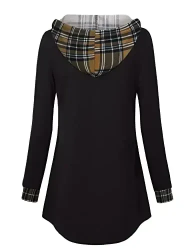 Add comfort to your style with Lotusmile Women's Long Sleeve Hooded Tunic Tops, Button Down Slouchy Pullover Hoodie Sweatshirt! This tunic will be an indispensable part of your wardrobe by combining comfort and elegance. Thanks to its 35% Cotton, 60% Polyester and 5% Spandex blend fabric, it is soft, flexible and durable. This hooded tunic offers comfortable use with its loose fit, while its light structure makes you feel like you are not wearing anything. The t-shirt thickness of its fabric allows you to wear it alone and easily create layers. This long-sleeved hooded top, which is indispensable for autumn and winter months, adapts to every combination with its classic style. Its adjustable drawstring hood, A-cut pleated front design and long cut allow you to achieve both a stylish and elegant look. Thanks to this tunic, you can reveal your body lines in the best way and increase your self-confidence. This hooded sweatshirt, which can be easily combined with leggings, skinny jeans, heels, boots or sneakers, will appeal to women of all styles. Whether you're in California, Texas, Florida or New York, the fabric and thickness of this tunic sweatshirt is ideal for fall months. You can wear it alone in early autumn and combine it with a long coat in winter. This comfortable hooded tunic top is a perfect option for home, outdoors, travel, gym, running and daily use. It will be a great gift option for Thanksgiving and Christmas for your wife, girlfriend, mother, daughter or friends. To protect the quality of the fabric and buttons, it is recommended to use a separate laundry bag when washing in the machine. Combine your style with comfort with Lotusmile and feel stylish at all times!