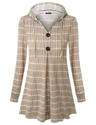 Обновите свой гардероб с помощью женских туник с длинным рукавом и капюшоном Lotusmile. Эти стильные и удобные туники созданы для активного образа жизни современной женщины. Эти свитшоты, изготовленные из высококачественной, мягкой и дышащей ткани, обеспечивают комфорт в течение всего дня. Дизайн с капюшоном согревает голову в ветреную погоду, а регулируемые шнурки позволяют регулировать плотность капюшона по своему усмотрению. Детали на пуговицах придают тунике элегантный вид и добавляют разнообразия вашему образу. Крой в стиле свинг красиво сидит по фигуре и не ограничивает свободу движений. Эти туники идеально сочетаются с леггинсами, джинсами или спортивными штанами и подходят для любых видов деятельности. Независимо от того, отдыхаете ли вы дома, занимаетесь спортом или встречаетесь с друзьями, туники Lotusmile всегда обеспечат вам стильный и удобный вид. Эти туники, представленные в различных цветах и размерах, являются незаменимой вещью в гардеробе каждой женщины. Эти изделия, изготовленные с качеством Lotusmile, долговечны и легко стираются. Выберите женские туники с длинным рукавом и капюшоном Lotusmile для стильного и комфортного образа.