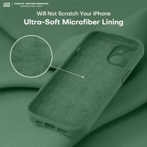 LOVE 3000 Compatible with iPhone 15 Case, [Smooth Silicone Full Coverage Camera] [8ft Drop Protection], Soft Microfiber Lining Full Body Protective Case for iPhone 15 6.1 inch - Green