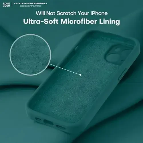 iPhone 13 case, silicone case, camera-protected case, shock-absorbing case, anti-scratch case, teal case, LOVE 3000, phone case, impact-resistant case, iPhone 13