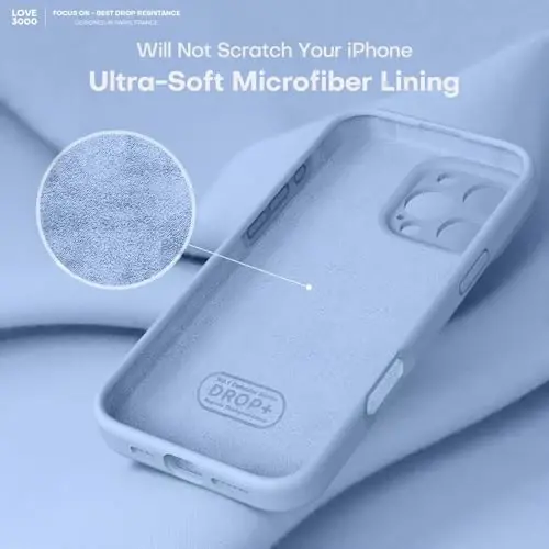 LOVE 3000 Designed for iPhone 16 Pro Max Case, Premium Silicone with [Soft Anti-Scratch Microfiber Lining] Shockproof Protective Phone Case for Men Women Girls 6.9", Light Blue