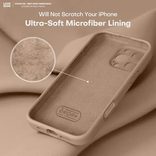LOVE 3000 Designed for iPhone 16 Pro Max Case, Premium Silicone with [Soft Anti-Scratch Microfiber Lining] Shockproof Protective Phone Case for Men Women Girls 6.9", Light Brown