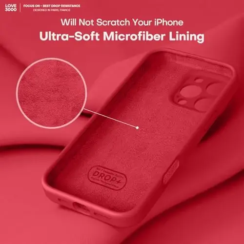 LOVE 3000 Designed for iPhone 16 Pro Max Case, Premium Silicone with [Soft Anti-Scratch Microfiber Lining] Shockproof Protective Phone Case for Men Women Girls 6.9", Red