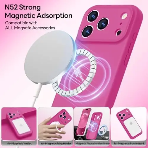 【Perfect Compatibility】Tailored to fit for iPhone 17 Pro Max 6.9inch(Three Camera). 【Upgraded Camera Protection】The upgraded for iPhone 17 Pro Max case is not only designed with a fully cover camera window. The protection lips is even upgraded to an unprecedented 3mm height. It effectively eliminate 99% of the camera's daily wear and tear damage. Perfectly fits for iPhone 17 Pro Max with precise cutouts for all buttons and ports. The simple and elegant case features a refined design for a maximum durable performance. 【Enhanced Shockproof Protection】Crafted from soft and environmental friendly and shock-absorbing silicone, this case effectively cushions your phone against accidental drops and impacts. Protection from bumps and hard-hits of the back and sides for your iPhone. Super soft, durable and resistant to turn yellow with the time. The design of fingerprint-proof ensures a perfect and natural clean display of iPhone 17 Pro Max. 【Excellent Compatible with all Magsafe Accessories】This iphone 17 Pro Max phone case built with upgraded N55SH magnets, stronger 7.5X magnetic force than most market cases. It ensures a secure grip, preventing your phone from slipping off car mounts, wireless chargers, or magnetic wallets. Stay firmly attached even with frequent use. Rigorously tested over 20,000 attacModazoneent cycles. Realize the quick wireless charging. 【For iPhone 17 Pro Max Slim Case】The upgraded for iPhone 17 Pro Max case maintains the elegant appearance of the phone and offers better soft handle feeling than traditional cases. excellent grip and anti slip performance. Can easily fit into pockets and bags. The flocking layer inside feels comfortable, reduces the impact of external forces on the phone and avoids scratches on the phone case. 【Lifetime Replacement】We're provide a lifetime replacement. Rest assured that your purchase is covered, and if you have any questions, CONTACT US! We have 24/7 professional support to give you a satisfactory answer!