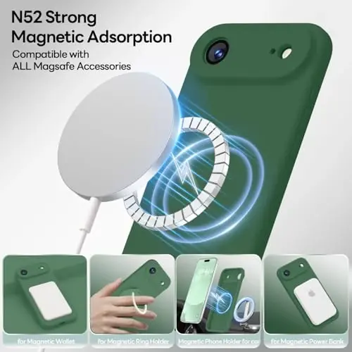LOVE 3000 Designed for iPhone Air Case, Premium Silicone [Compatible with Magsafe][Soft Anti-Scratch Microfiber Lining] Shockproof Protective Phone Case for Men Women 6.5", Green