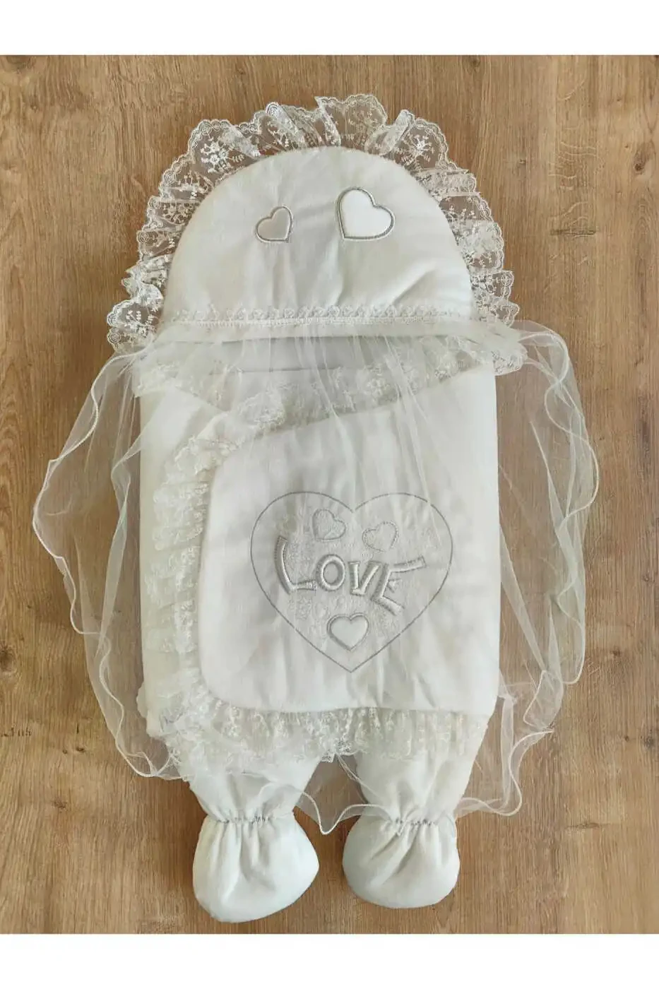 Love Lace Footed Baby Wrap, разработанный с заботой о нежной коже и комфорте вашего новорожденного, обеспечивает безопасную и комфортную среду для вашего малыша благодаря своей мягкой и дышащей ткани, окутывая его теплыми объятиями. Пеленание, которое играет важную роль в развитии привычек сна у младенцев и в том, чтобы они чувствовали себя в безопасности, дополняет наряды вашего малыша своим стильным и элегантным кружевным дизайном, делая их еще милее.