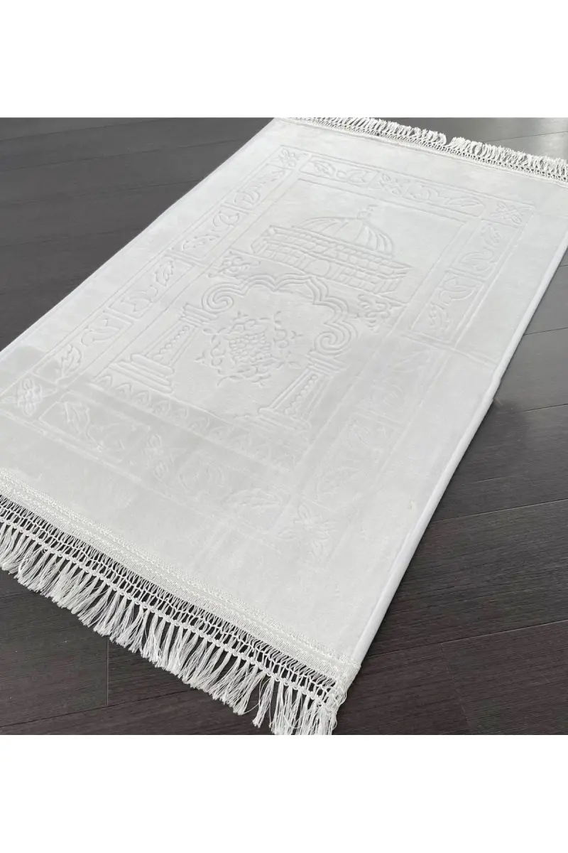 Lüks Kalın Yumuşak Peluş Seccade Kaydırmaz Taban Çeyizlik Hediye-Beyaz