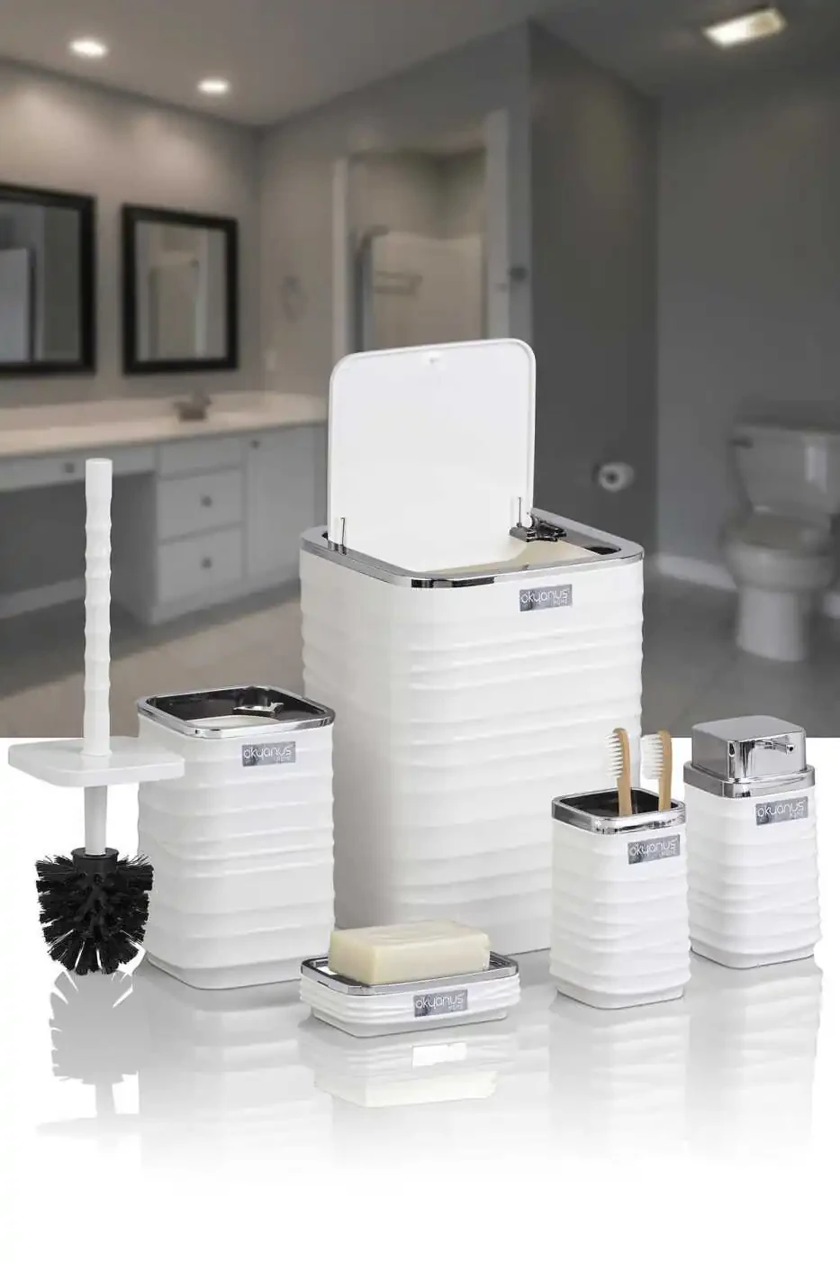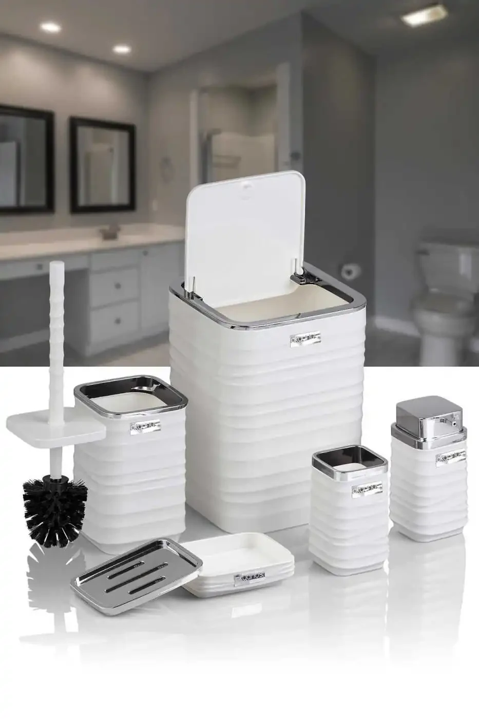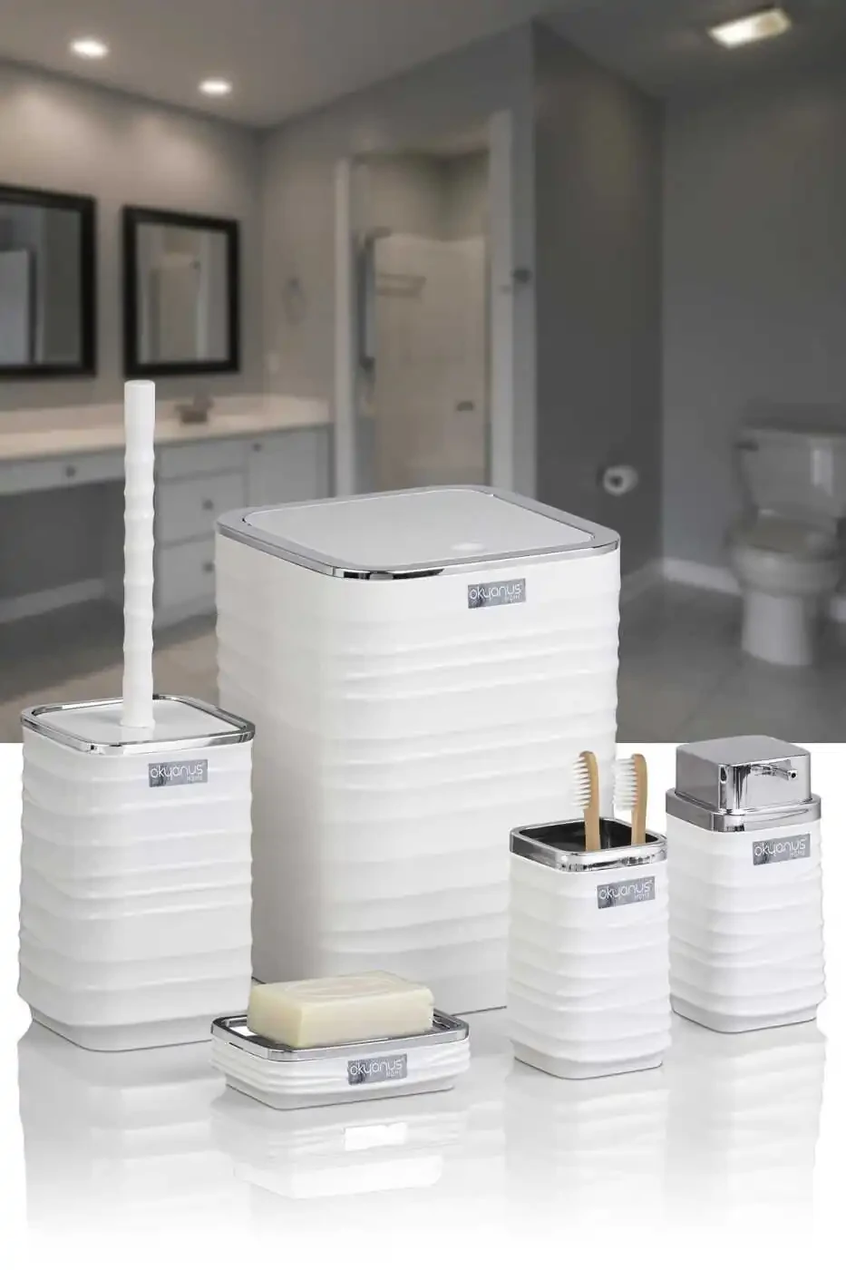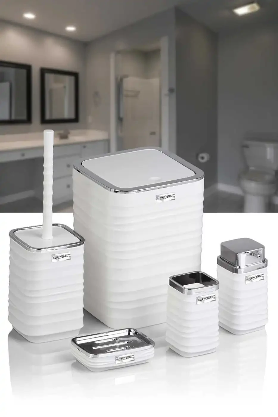 Набор для ванной комнаты Luna белый хром квадратный 5 предметов - Стиль и функциональность в одном